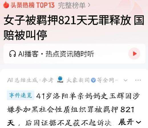 海南,41岁单亲妈妈因为涉嫌参加黑社会被羁押了821天,后来,检察院认定证据不足,不予起诉,将她无罪释放,并同意赔偿她的损失。谁知,赔偿程序才启动13天,警方竟以“骗取银行贷款”为由,对她重新立案侦查,赔偿的事也暂且中止。女子懵了,既然自己不构成犯罪,为何又要再来一次。 几年前,海南一位单亲妈妈她突然被警方带走,理由是涉嫌参加黑社会性质组织,随后就被依法羁押。这个消息像晴天霹雳,砸得她晕头转向,她甚至不知道自己为何会被卷入这样的风波,更不知道所谓的“黑社会”和自己有什么关系。 被带走的那一刻,她最放心不下的就是家里的孩子,孩子还小,没人照顾,一想到孩子可能要独自面对生活,她就心如刀绞,整夜整夜无法入眠。 在看守所的日子里,每一天都过得格外煎熬。狭小的房间,单调的作息,没有自由,没有阳光,更没有孩子的欢声笑语。 这821天里,她每天都在盼着释放的消息,盼着能亲手抱抱孩子,盼着能重新过上正常人的生活,这份执念,支撑着她熬过了最黑暗的日子。 漫长的等待,终于有了结果。检察院经过反复详细的核查,调取了大量的证据,最终认定,林女士涉嫌参加黑社会性质组织的证据不足,不符合起诉条件,依法作出了不予起诉的决定,将她无罪释放,同时明确同意赔偿她被错误羁押821天期间的各项损失,包括误工费、精神损害抚慰金等。 走出看守所的那一刻,林女士忍不住红了眼眶,泪水顺着脸颊滑落,不是难过,是解脱,是喜悦,也是委屈。 回到家,推开门的那一刻,她看到了日思夜想的孩子。孩子长高了不少,眼神里却多了几分怯生生,看到她,先是愣了几秒,然后扑进她的怀里,放声大哭。 安抚好孩子后,林女士就开始配合检察院办理赔偿相关手续。她按照要求,准备各种材料,填写相关表格,每一步都做得格外认真,心里充满了期待。 她想着,等拿到赔偿款,就先给孩子买些新衣服、新文具,再找一份稳定的工作,带着孩子重新开始生活,把这821天耽误的时光,一点点补回来,让孩子能过上安稳幸福的日子。 赔偿程序一步步推进,一切都在朝着好的方向发展,林女士脸上的笑容也渐渐多了起来,眼底的疲惫也消散了一些。 她开始规划未来的生活,想着带孩子去看看外面的世界,弥补这两年多的亏欠。可她万万没有想到,这份来之不易的希望,仅仅维持了13天,就被彻底打破,一场新的风波,再次向她袭来。 那天上午,林女士正在家里给孩子做饭,敲门声突然响起。她打开门,看到两名身着警服的工作人员,心里瞬间咯噔一下,有种不好的预感。 果然,工作人员告知她,警方以“骗取银行贷款”为由,对她重新立案侦查,之前检察院启动的赔偿程序,也将暂且中止,等待案件侦查结束后再作决定。 听到这个消息,林女士整个人都僵住了,手里的锅铲“哐当”一声掉在地上,大脑一片空白,半天反应不过来。她愣在原地,眼神空洞,嘴里反复念叨着“不可能,这不可能”。 她想不通,所谓的“骗取银行贷款”一事,早就已经经过法院审理,并且法院明确判定她不构成犯罪,怎么过了这么久,又被重新拿出来立案侦查,还要让她再次陷入被调查的困境。 她慢慢缓过神来,回忆起了当年的事情。几年前,她因为家里遇到困难,急需一笔钱,便按照正规流程向银行申请了一笔贷款,所有的手续都是齐全的,没有任何违规操作,也没有任何欺骗行为。 当时法院经过详细审理,核实了所有情况,明确作出了她不构成骗贷犯罪的判决,这件事早就已经尘埃落定。 如今,检察院刚认定她无罪,赔偿程序才启动没多久,警方就以同样的事由重新立案,这让她再次陷入了迷茫和无助。 对此,你们有什么看法,欢迎评论留言~