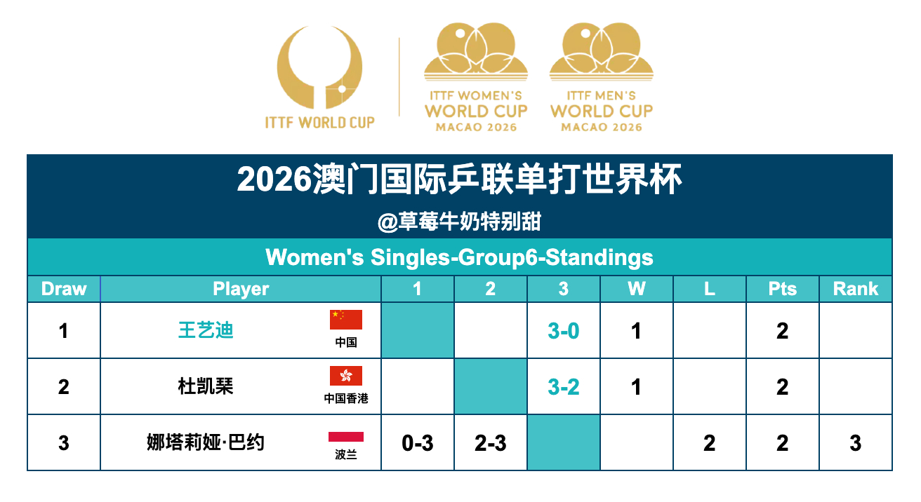 2026澳门国际乒联单打世界杯丨女单第一阶段赛况