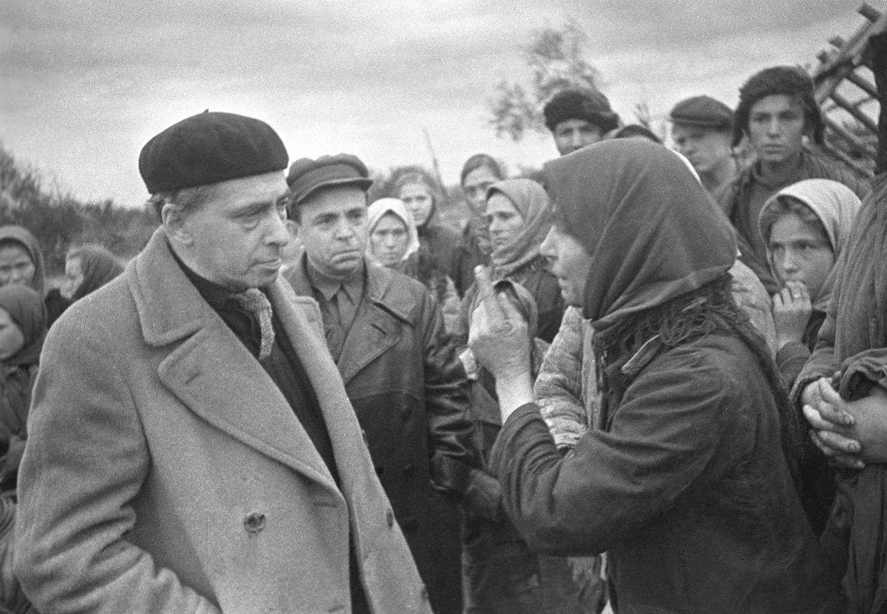 作家?情报员?不过他确实是少有敢跟斯大林争辩的人——1943 年 11 月 17 日,苏联作家伊利亚・爱伦堡(左侧戴贝雷帽者) 与被解放的乌克兰村庄居民交谈。 爱伦堡(Илья Эренбург)是犹太裔,苏联时期非常著名的作家,其早年的经历很复杂——1906年就加入布尔什维克,被捕后脱离组织;十月革命和内战时期,态度摇摆;在西班牙内战时期担任战地记者,抨击法西斯;二战前期被法国逮捕,因为怀疑他与纳粹合作,巴黎陷落前被苏联要了回去…… 卫国战争时期,他担任《红星报》等媒体的战地记者,发表了 2000 余篇文章,以激烈反纳粹言论动员苏联军民,他提出的口号 “杀死德国人” 在苏联广为流传。 战后,斯大林对犹太人比较排斥,曾要求犹太裔的知名人士都要在反犹公开信上署名。苏联所有犹太名人都在公开信上签了名,唯独爱伦堡没签名。他上书斯大林,规劝其收回成命。然后,坐在家里等着被逮捕。但是,等了几天居然没事——斯大林突然病逝了。 比较有意思的是:斯大林在世的时候不喜欢爱伦堡,认为他是犹太裔的多重间谍。但以色列人同样 也不喜欢他,以色列总理梅厄夫人在当总理前是该国第一任驻苏大使,她与爱伦堡的关系很差。 1954年,爱伦堡发表中篇小说《解冻》,开创了苏联解冻文学的潮流。1960年代,出版回忆录《人・岁月・生活》。 [呲牙] 感觉他很有可能就是苏联情报人员,或者至少负担了一些情报任务。