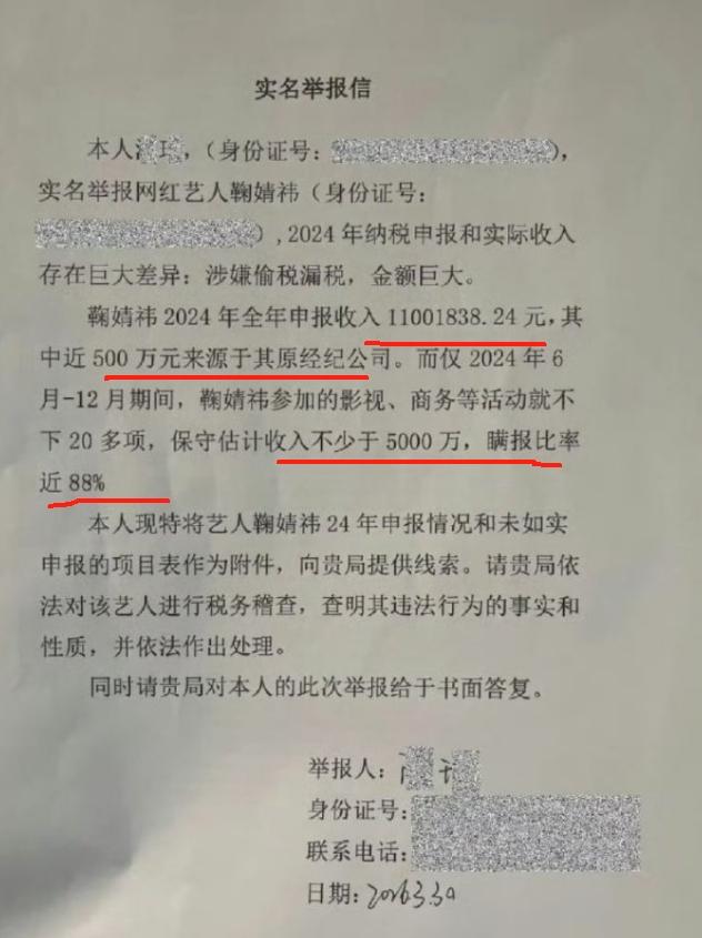 鞠婧祎被实名举报偷税漏税! 在与前公司解约的关口上,鞠婧祎应该不敢偷税漏税,站台和活动30多万一次比较合理,代言费用上百万也没啥问题,但是杂志销量900万和1100万是杂志总销量,这笔钱不可能给鞠婧祎一个人,偷税漏税流程一般要审查四五个月,官方通报,鞠婧祎去年9月开始被举报,经过几个月审查,未发现偷税漏税问题,丝芭否认举报鞠婧祎的主体。