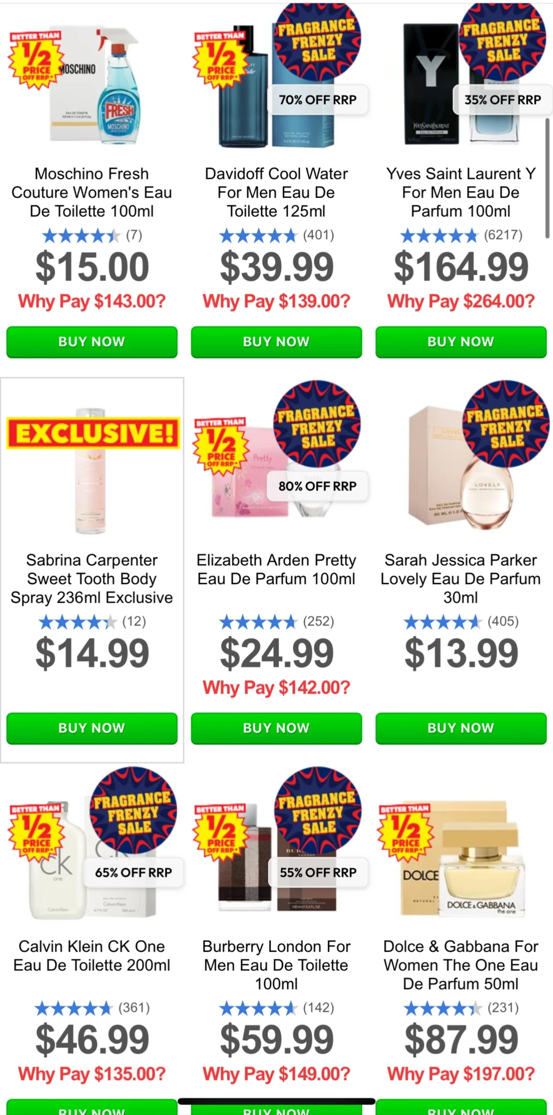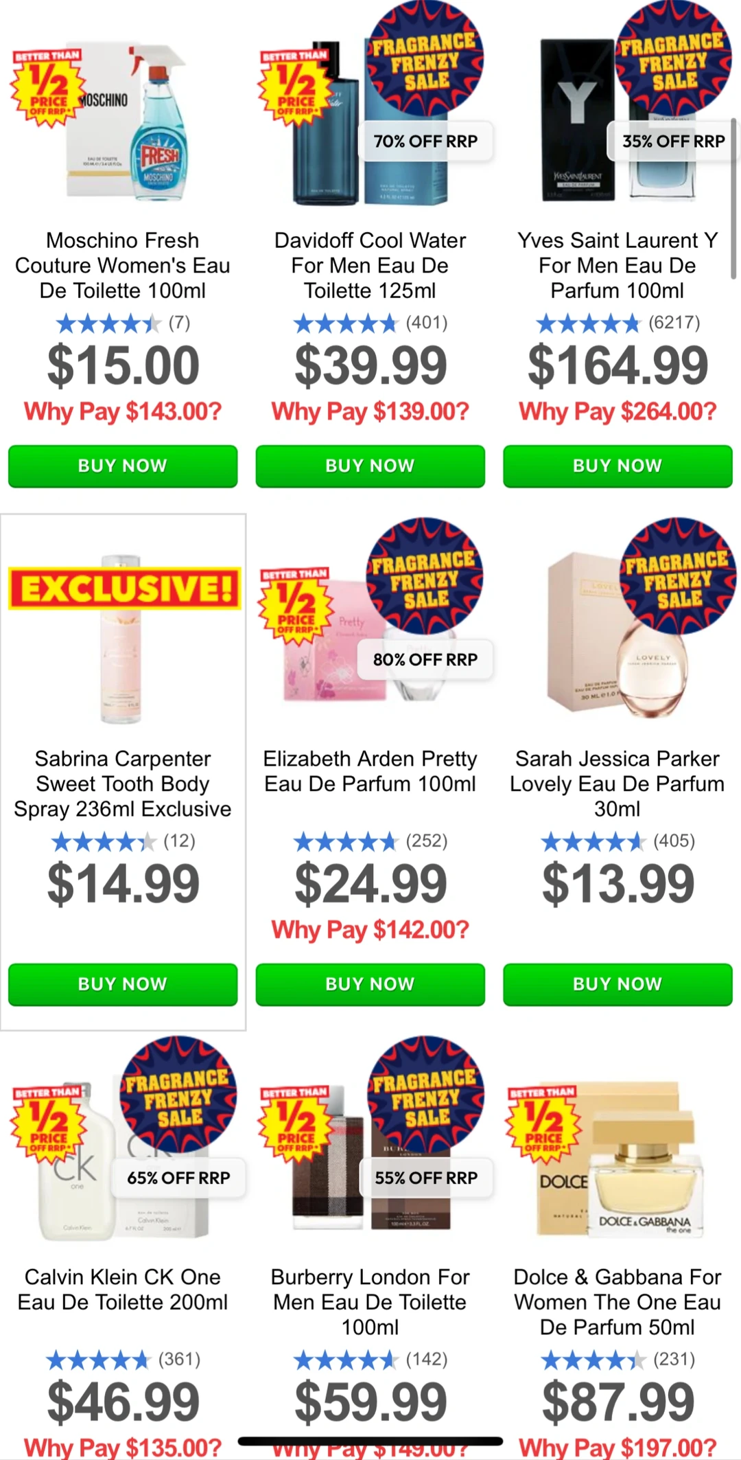 新西兰药房的大牌香水终于打折了! 🔥最低3折起!这可是难得一遇的机会啊! BURBERRY 70% ElizabethArden 70% Calvin Klein 65% VERSACE 65% YVESSAINT/AURENT 60% JIMMY CHOO 60% HUGO BOSS 55% LANCOME 55% paco rabanne 50% GIORGIO ARMANI 45% 活动至到周日!平时不舍得入手的现在可以冲了[色色R] 关注我,下一篇更精彩