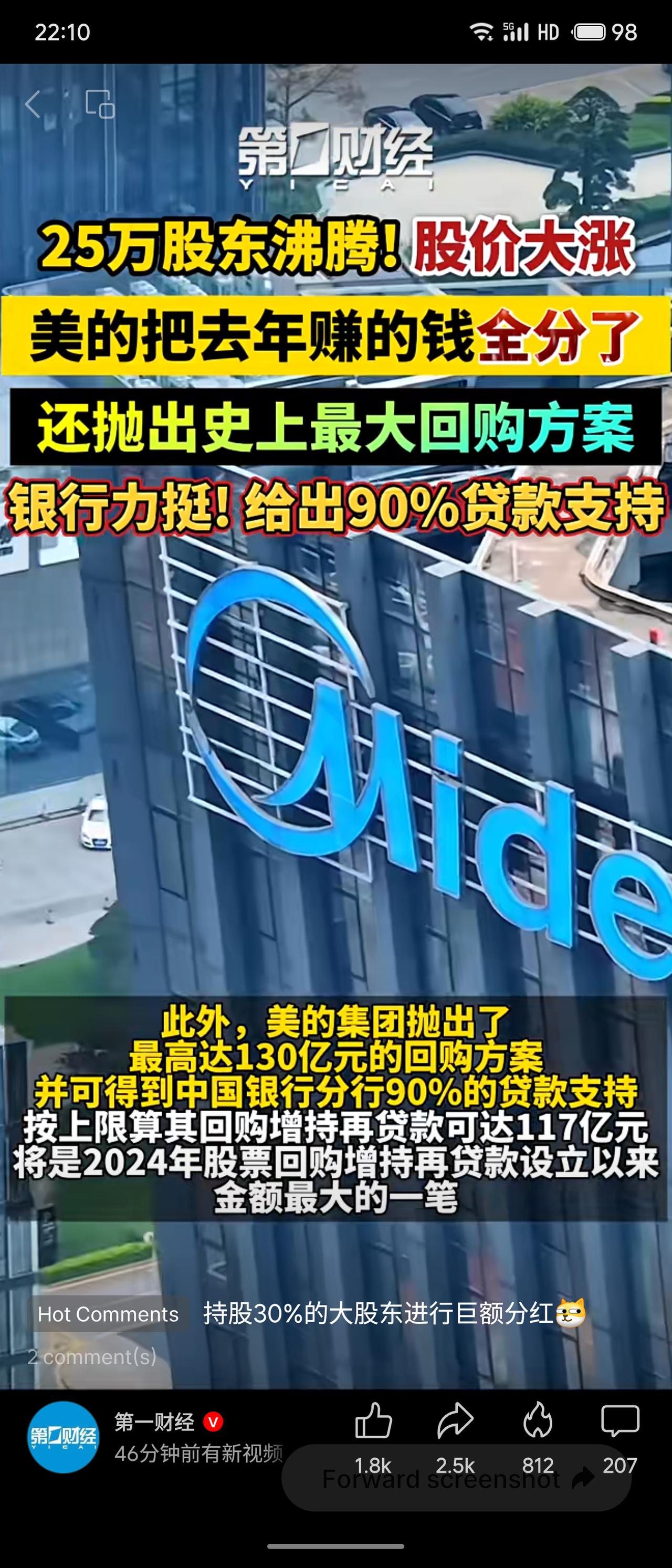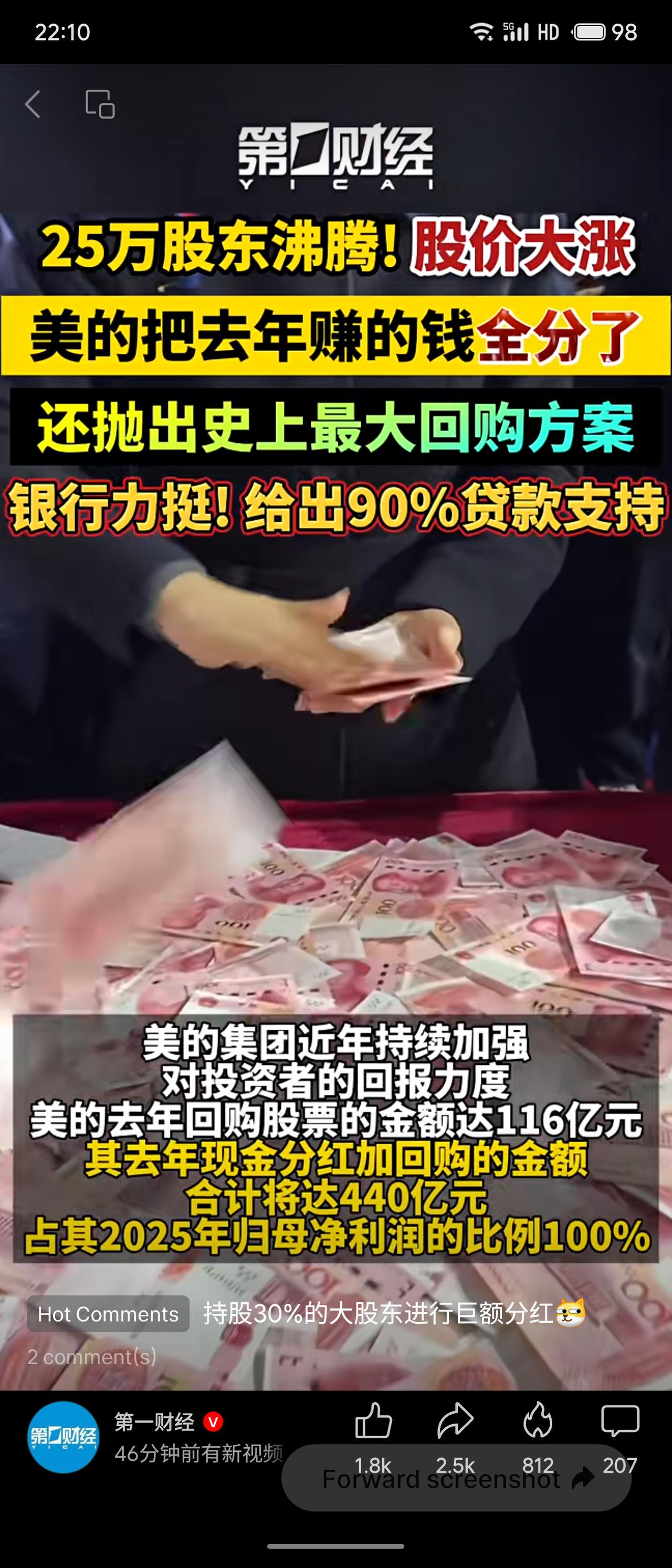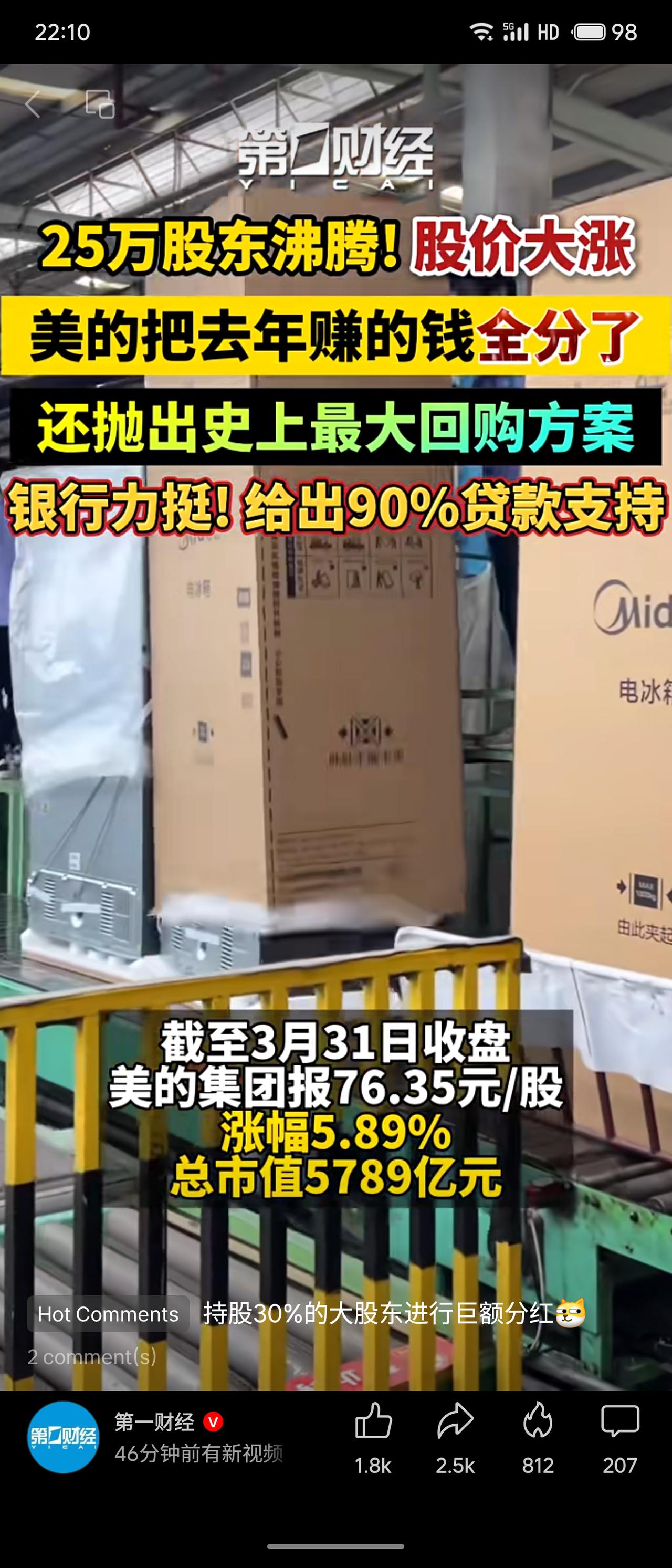 美的集团2025年业绩创新高,营收4565亿元,归母净利润439.45亿元。公司推出史上最大力度分红及回购方案,现金分红加回购合计440亿元,占净利润100%。同时抛出最高130亿元回购计划,获中国银行分行90%贷款支持。受此提振,股价大涨5.89%,总市值达5789亿元,25万股东受益。