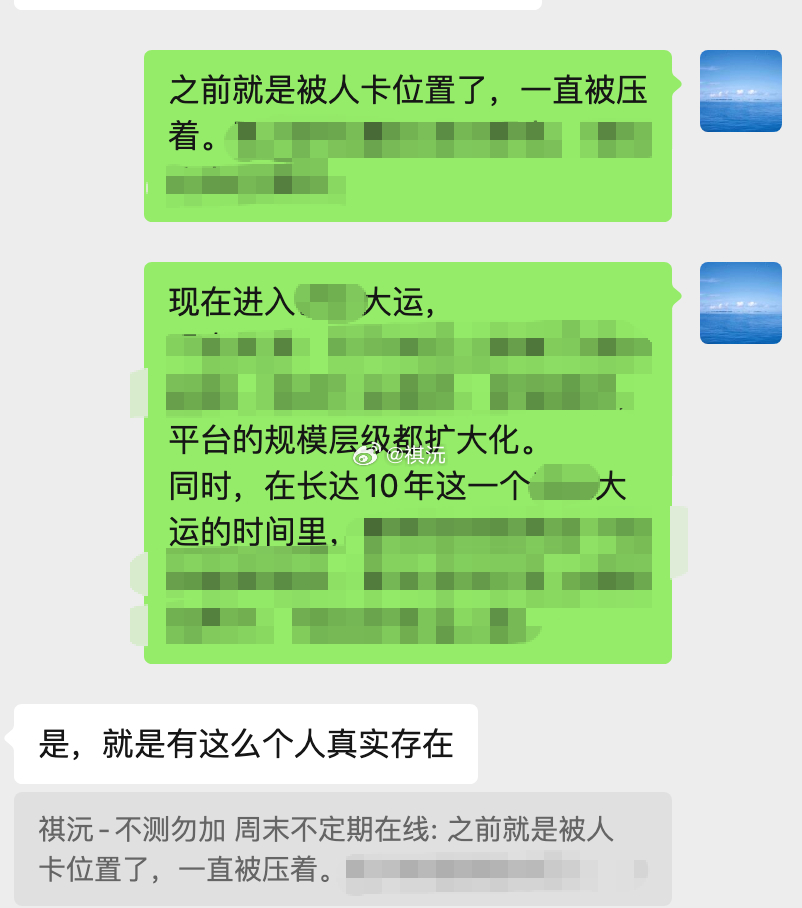 算到某位访客:在核对了个性、行业之后,提到命局当中,工作当中某一年被卡上升位置、以及某一年被转移、打压盗窃了工作成果,也是可以在某个具体的大运流年里面反应出来的。反馈说是有这样的人、这些事存在。