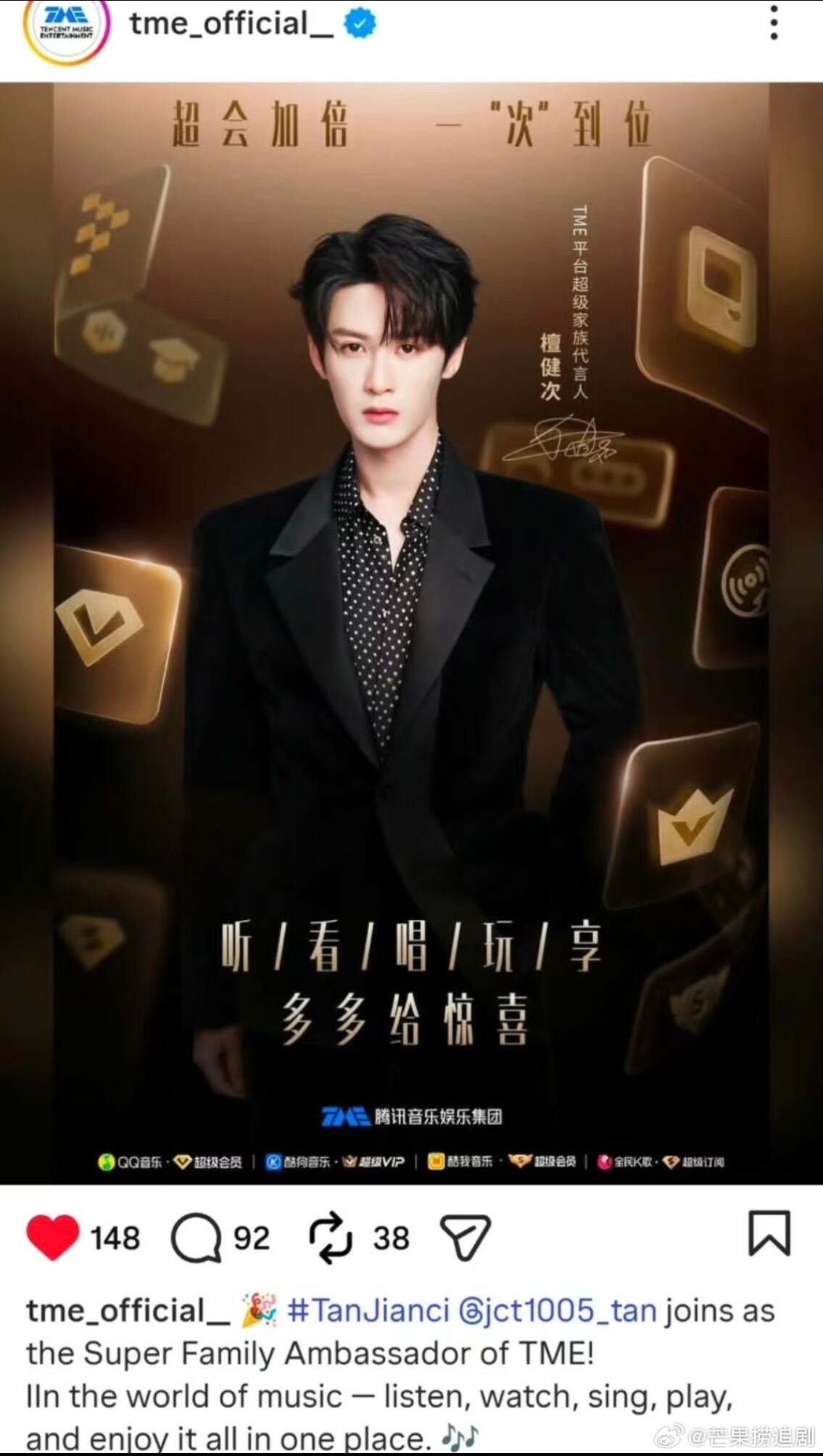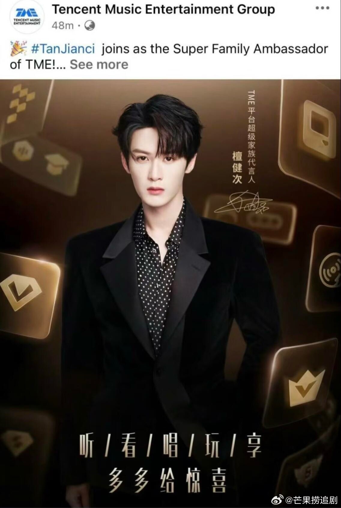 外网官宣—檀健次TME平台超级家族代言人!