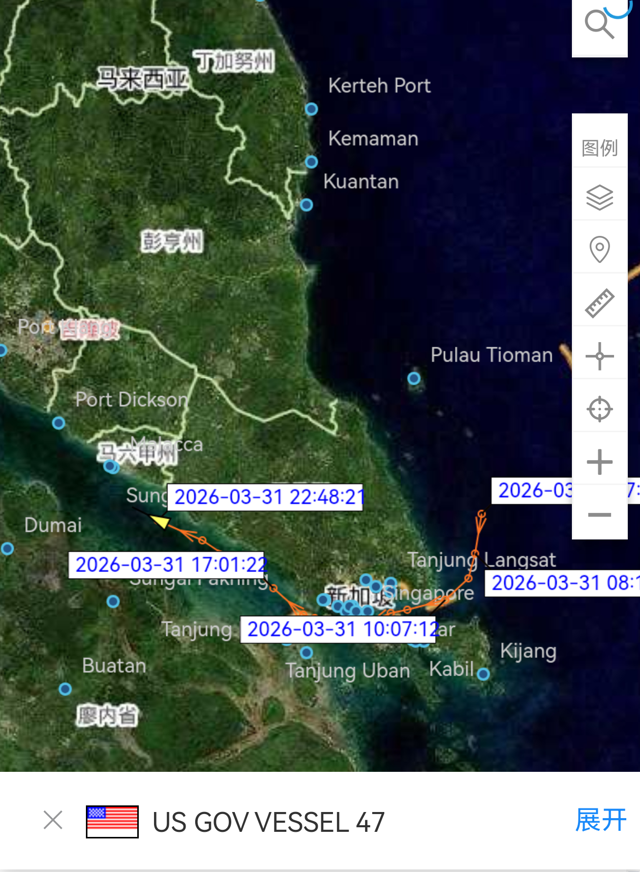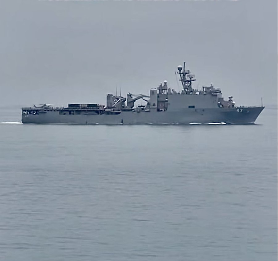美海军登陆舰增援中东——AIS信号显示,美国海军拉什莫尔号两栖登陆舰(LSD-47)(图1,图2)和拉斐尔·佩拉塔号驱逐舰(DDG-115)(图3,图4)正在通过马六甲海峡前往印度洋。