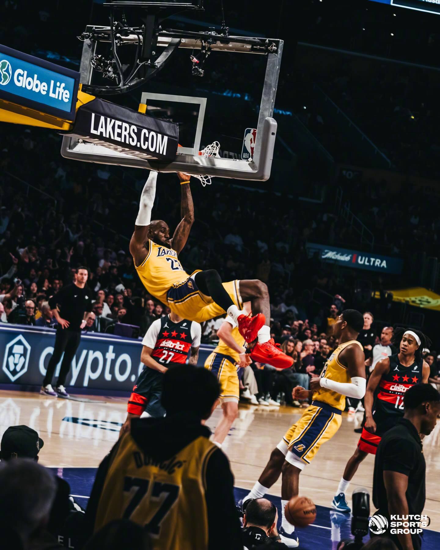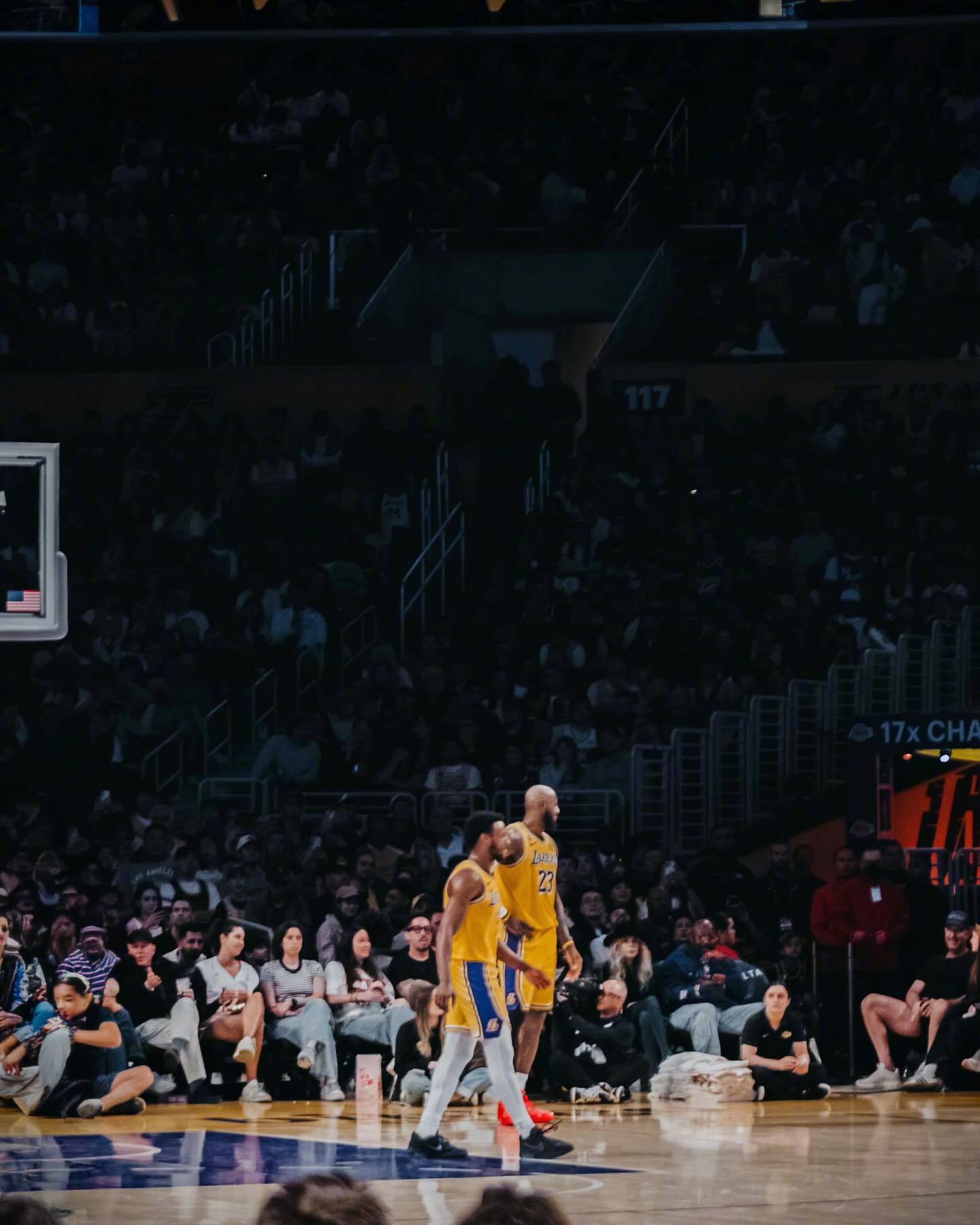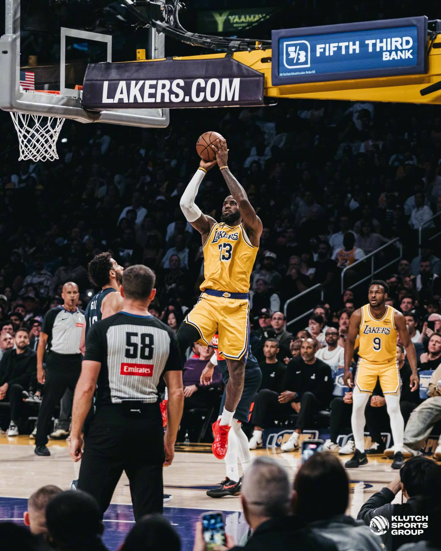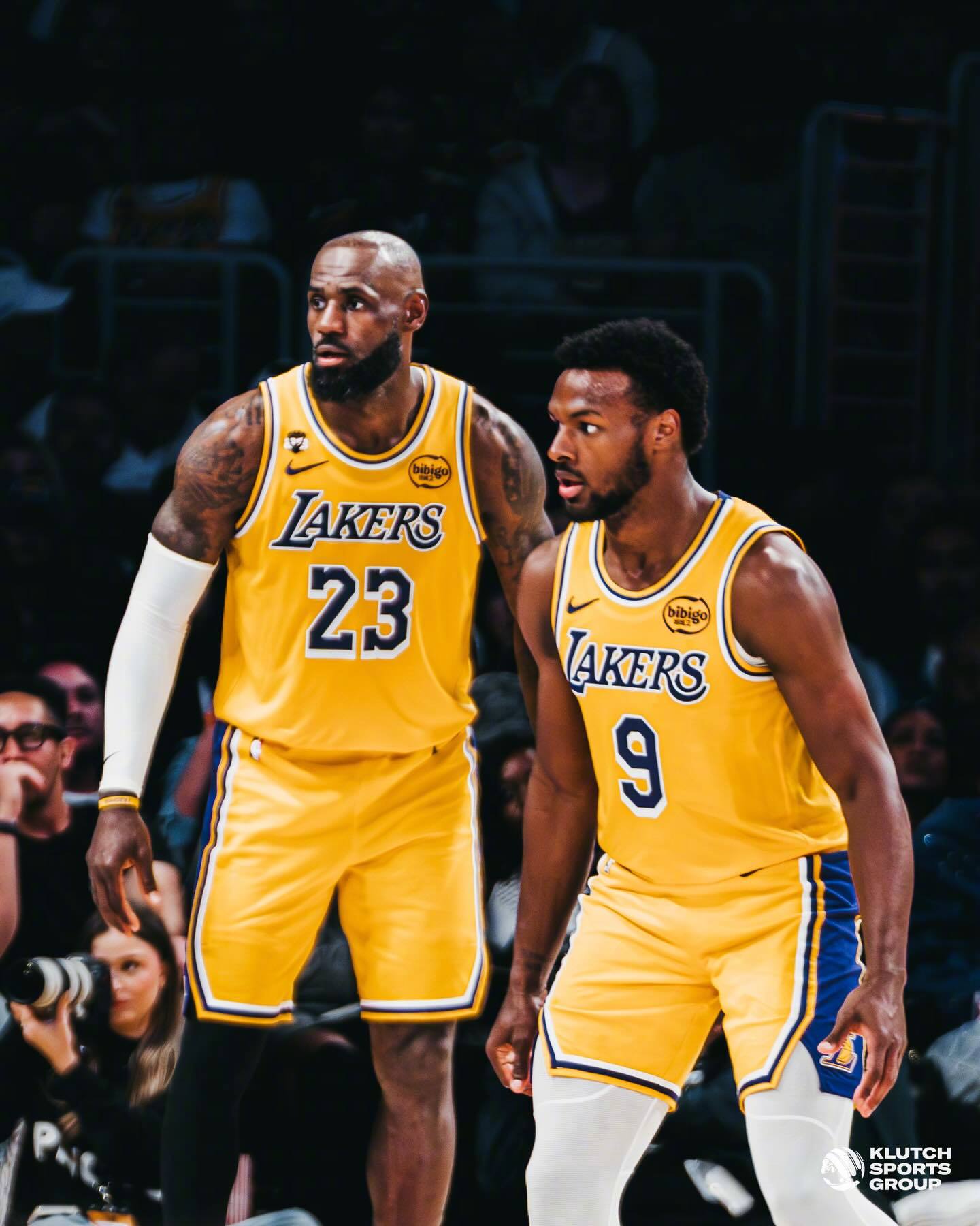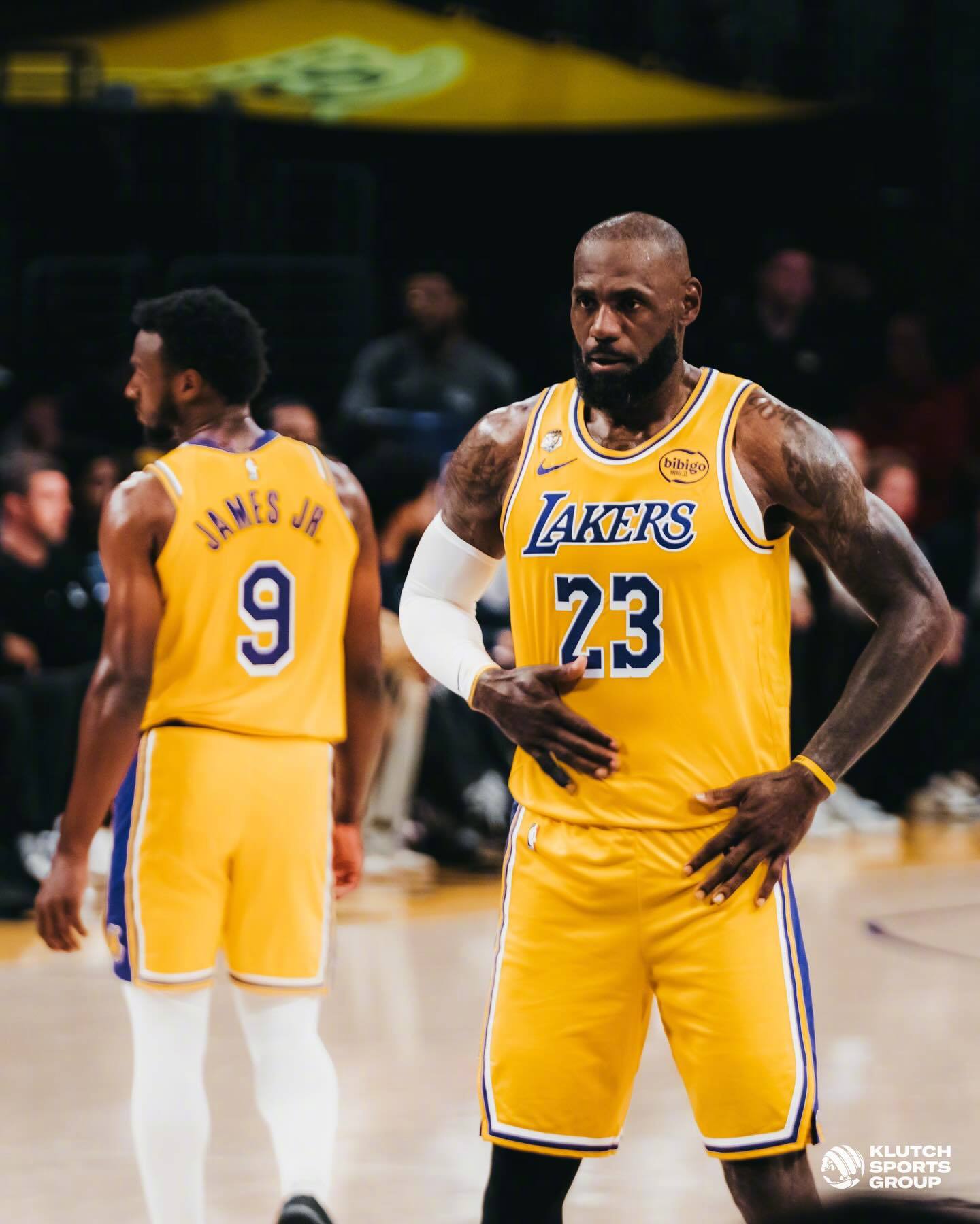 詹姆斯晒出了一组昨日比赛照,其中多张是和儿子布朗尼的同框。
