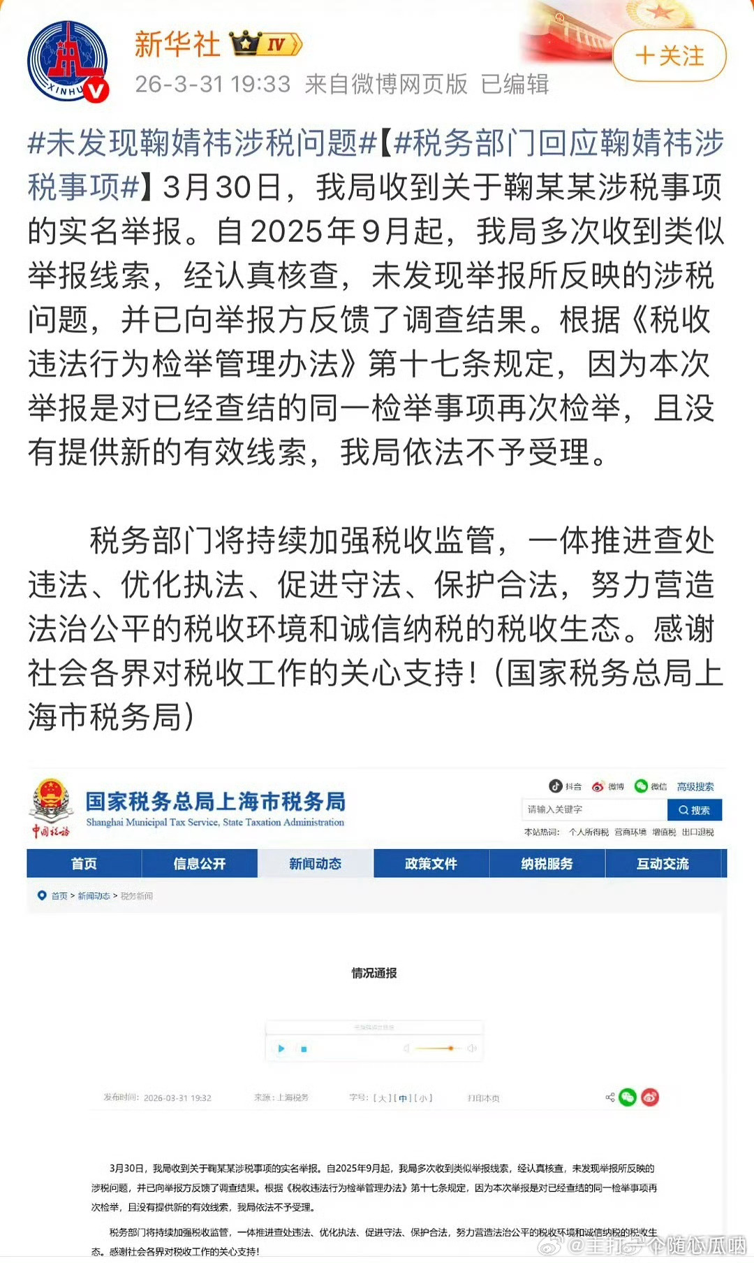 税务局回应还挺快,未发现鞠婧祎涉税问题