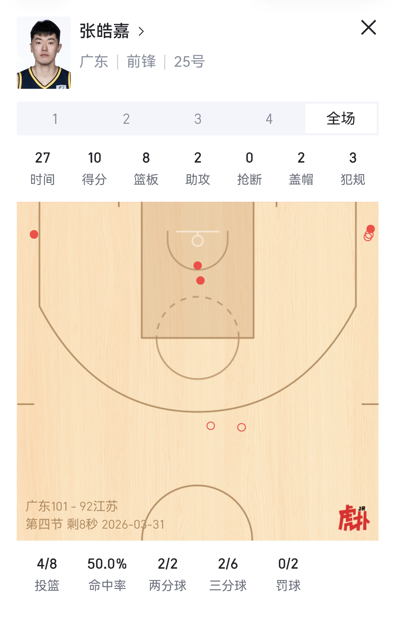 数据不重要,重要的是图,张皓嘉牛逼广东男篮vs江苏男篮