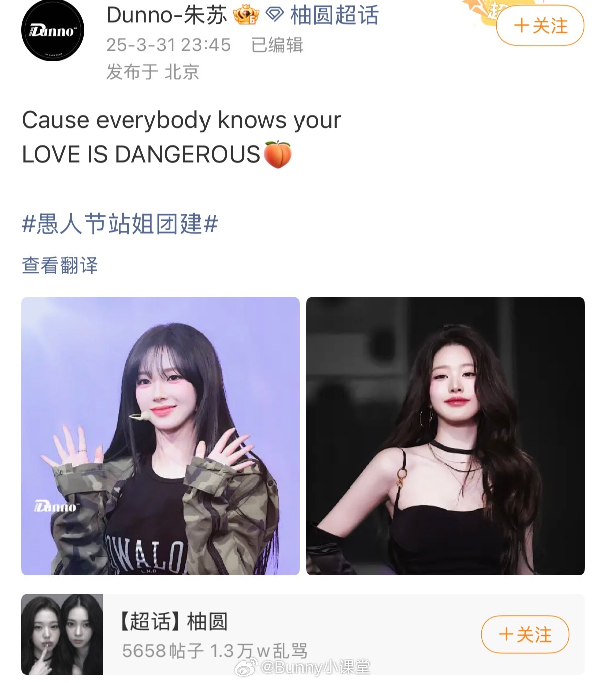 朱志鑫、苏新皓CP站姐战绩可查,今天发了虞书欣、赵露思,去年发的是张元英和柳智敏,唯爱战地玫瑰站姐团建