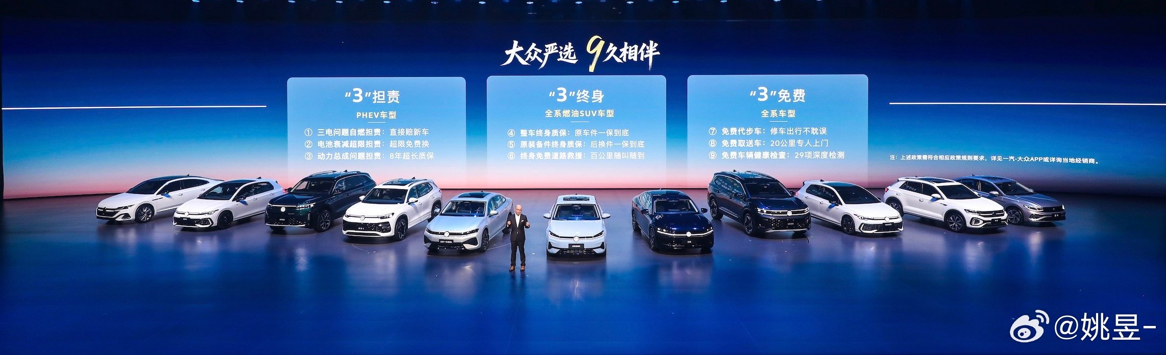一汽大众发布会,一次性直接上了五款新车:全新速腾S、全新揽巡、迈腾35周年严选款、迈腾PHEV、探岳L PHEV,轿车/SUV,纯油/混动全都有,排面!同时发布权益「大众严选 9久相伴」:三担责、三终身、三免费,PHEV三电问题厂家全担,燃油车终身质保,这波诚意给的很满啊