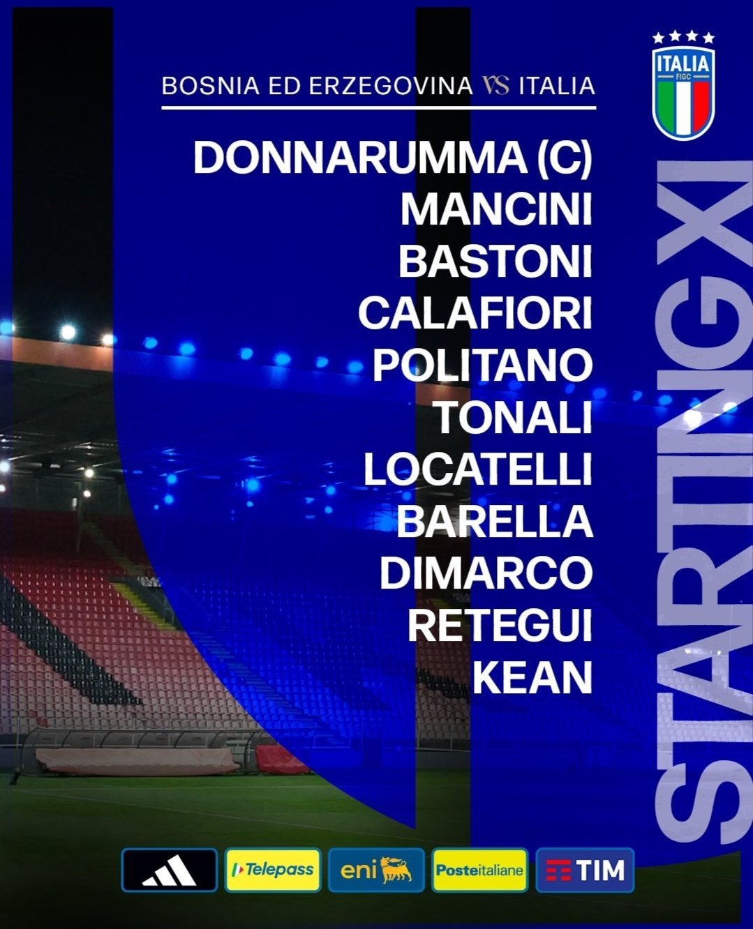 【首发阵容】 世预赛 附加赛:意大利🇮🇹客场vs波黑🇧🇦队。💪🏻意大