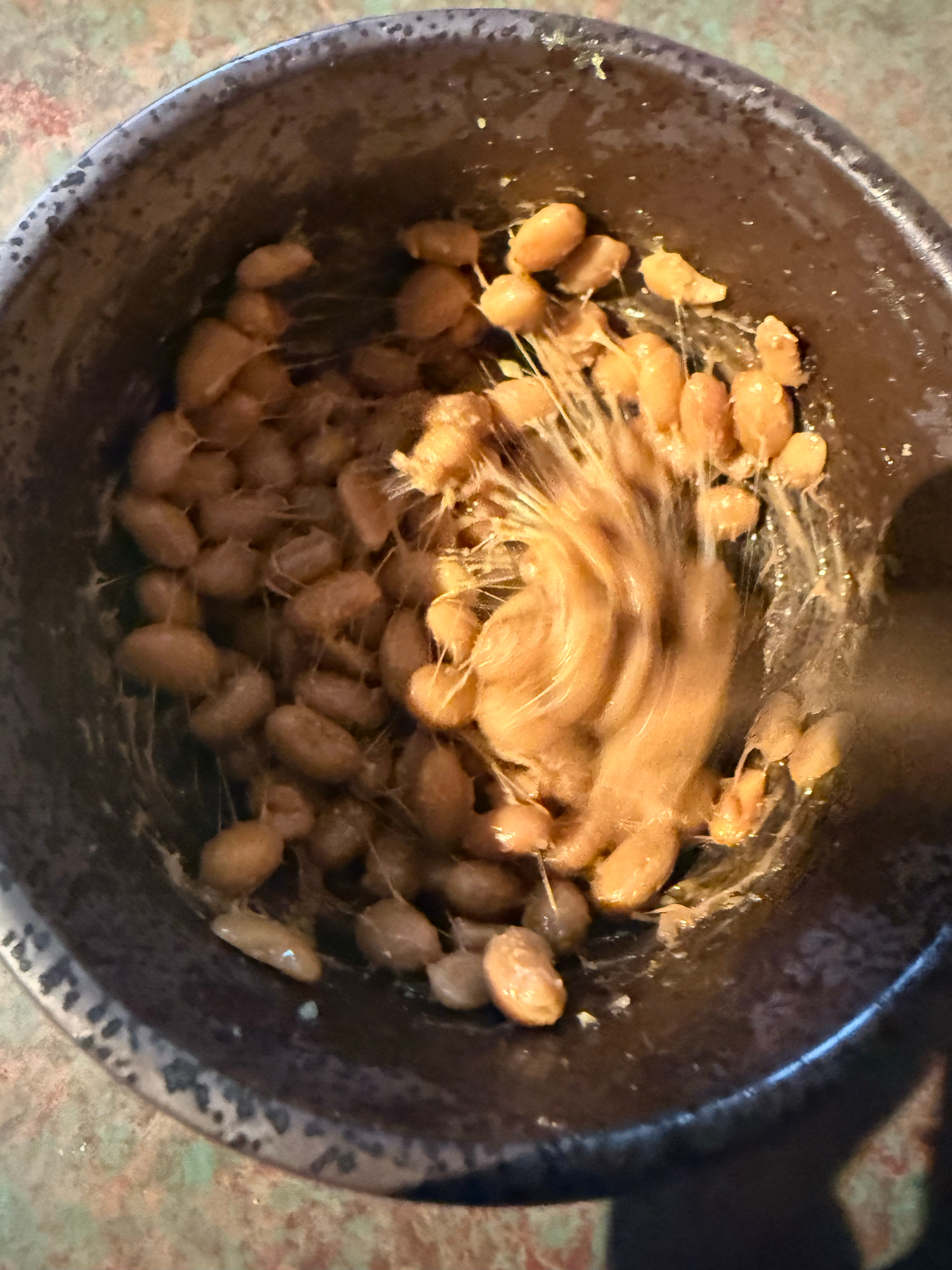 我自制的纳豆,拉丝比超市卖的还好看,风味也更佳。以后再也不用去超市买了。