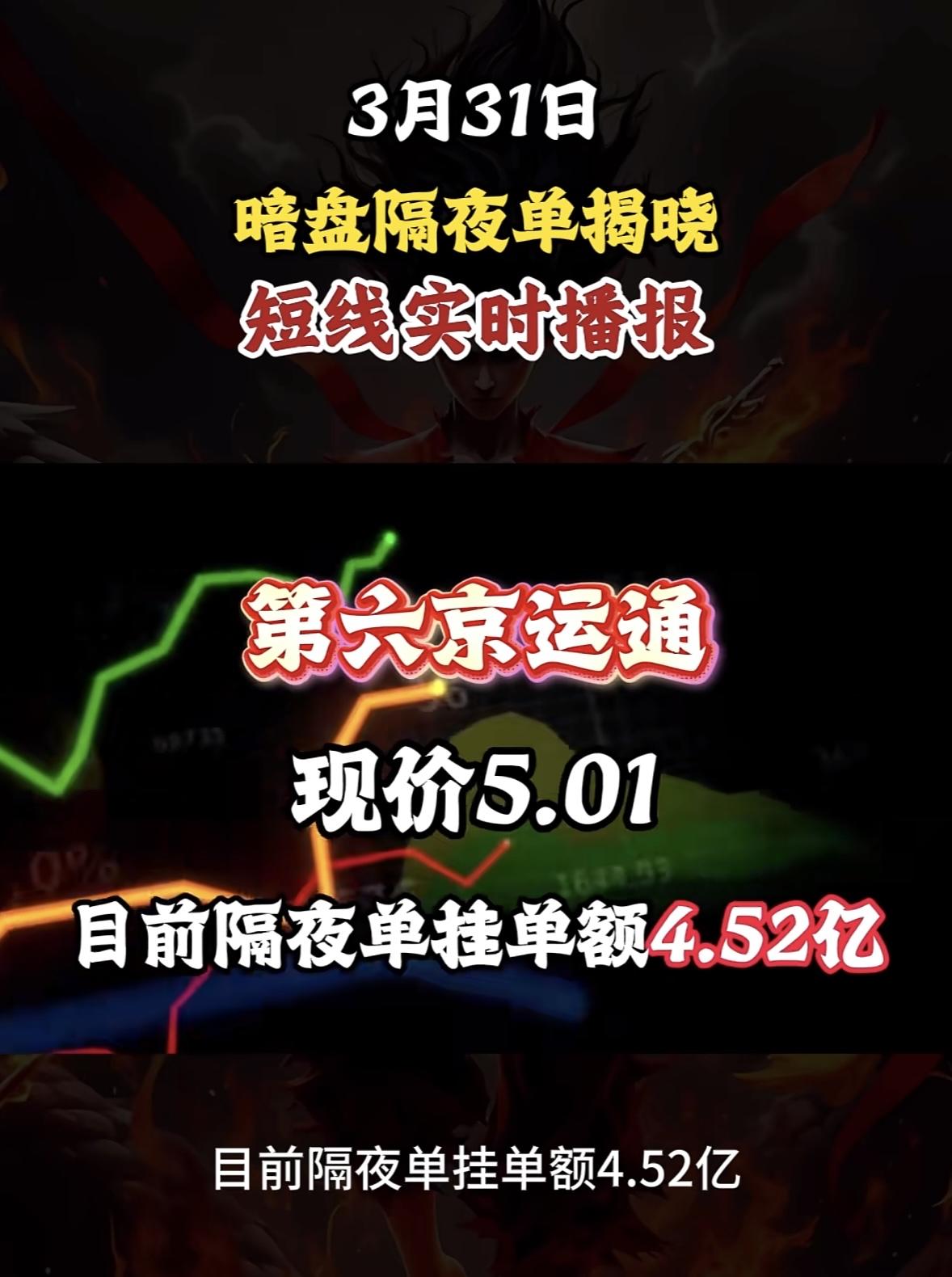 4月1日周三暗盘隔夜挂单排行榜揭晓 暗盘隔夜单揭晓,京运通现价5.01,隔夜单