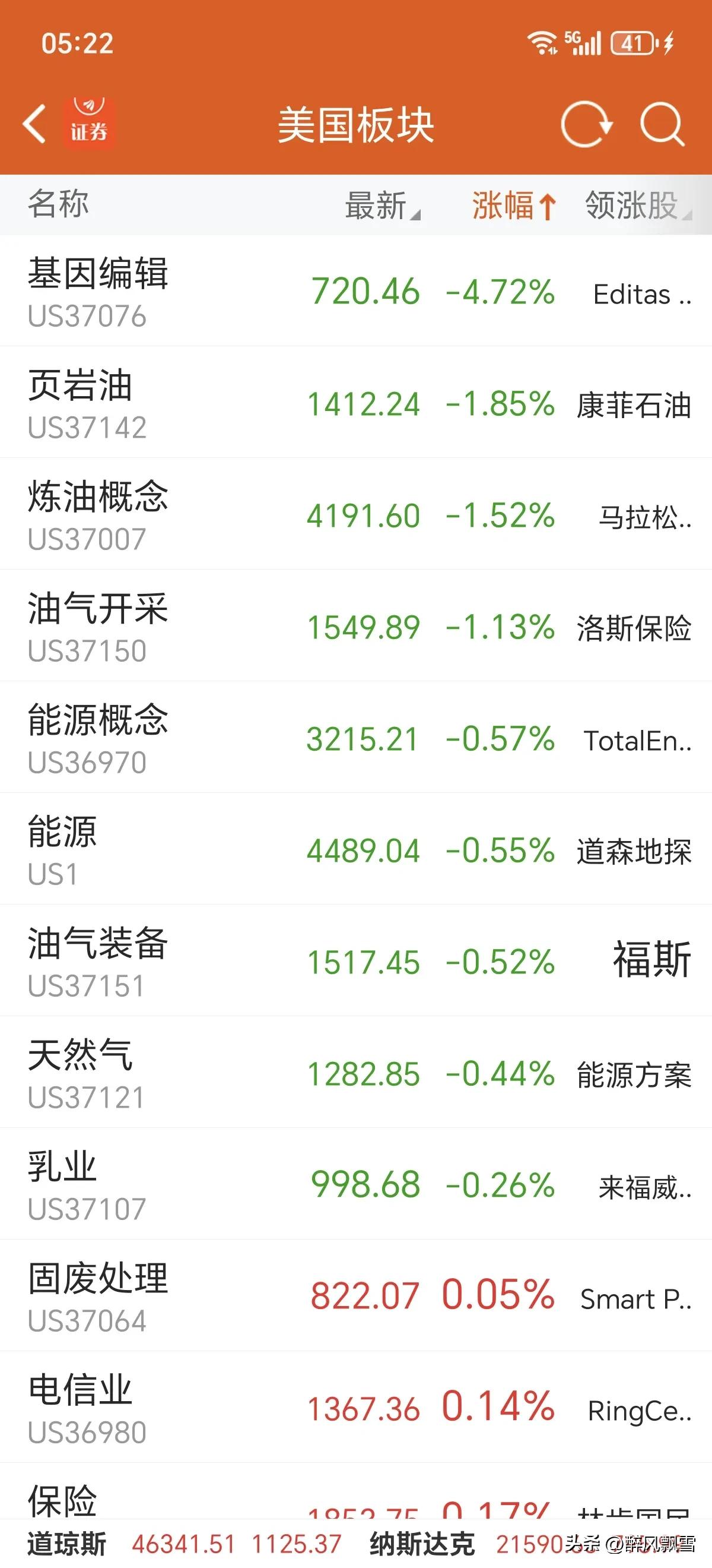 美市收盘一一大阳 大A:高开无疑,投J市,震荡修复期,控制为上! 美股三大指数集体大涨,道指涨2.49%、纳指涨3.83%、标普500涨2.91%,市场情绪亢奋。 领涨板块集中于科技赛道,英伟达概念以10.28%涨幅领跑,激光雷达、MCU芯片等AI硬件方向同步走强;能源、油气板块普遍回调,基因编辑领跌。纳斯达克中国金龙指数涨2.80%,中概股回暖。