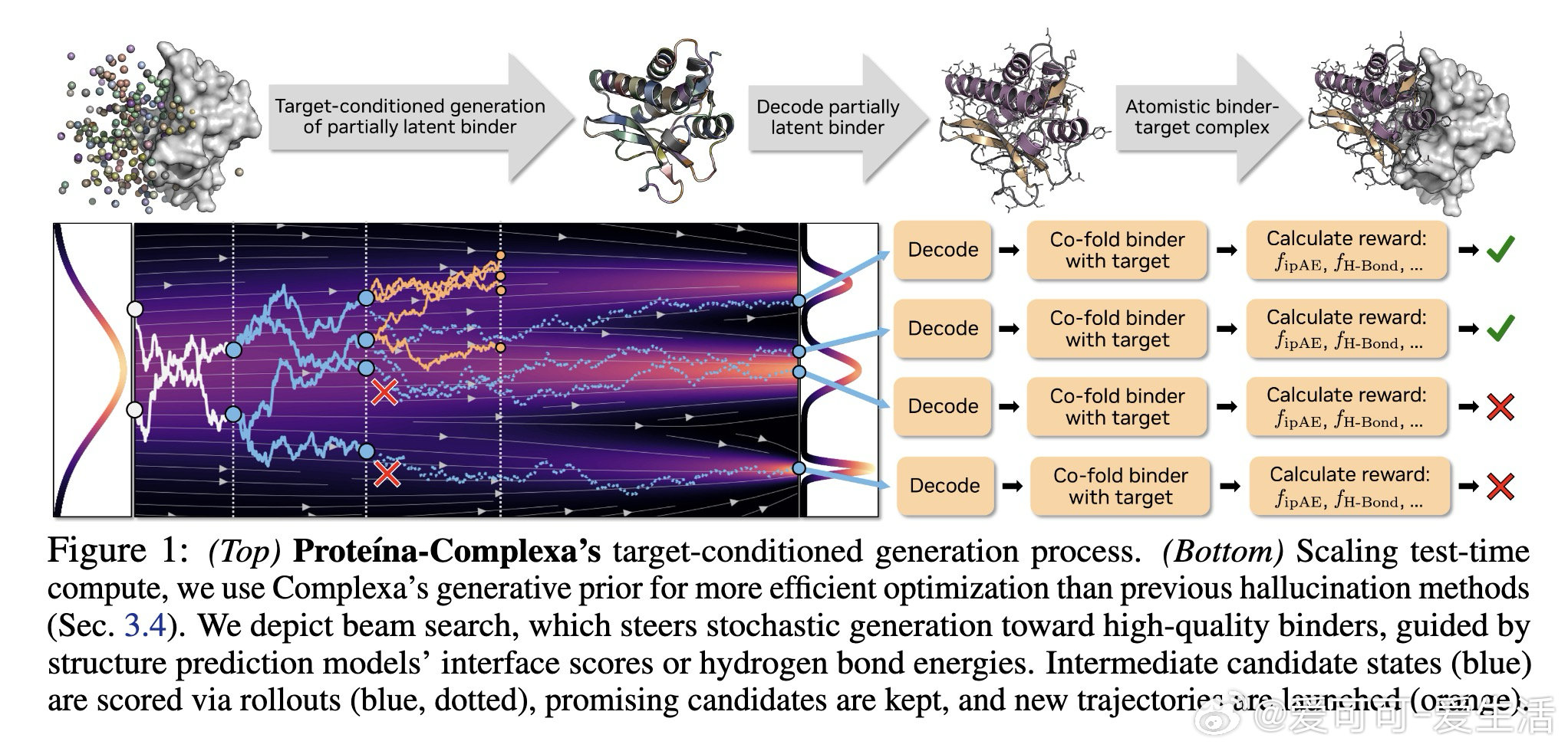 在蛋白质结合物设计领域,如何从头生成能与特定靶蛋白精准结合的候选分子,是一个长期未解的难题。现有方法陷入两种对立:生成式模型依赖训练数据生成候选结构,但推理阶段固定;幻觉优化法(如BindCraft)通过结构预测模型的梯度反馈直接搜索序列,却缺乏生成先验的约束。这一割裂使两类方法各有明显短板。