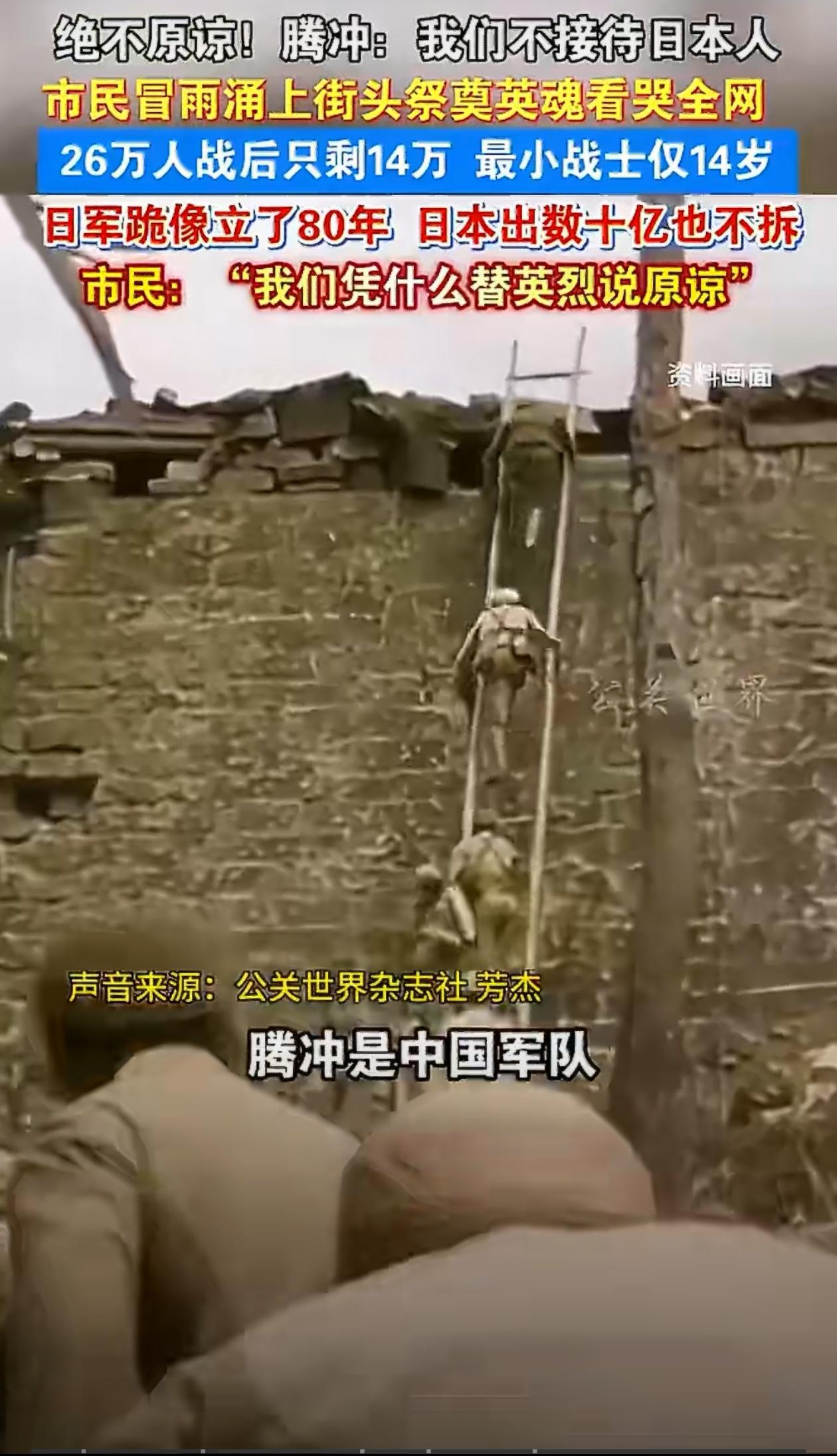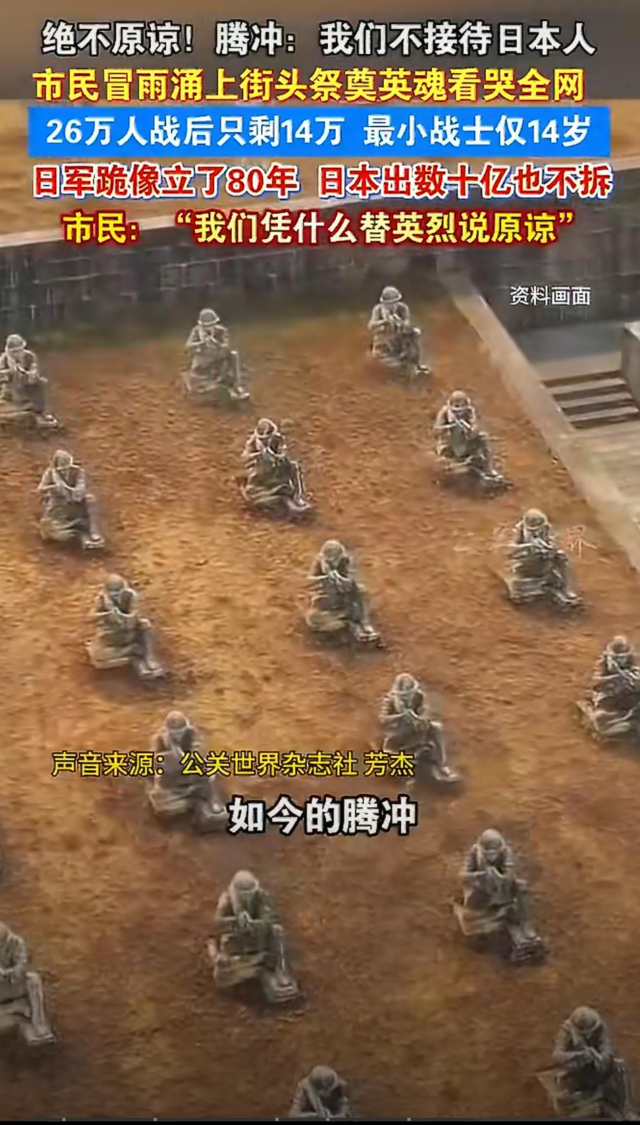 不接待日本人的腾冲全城春祭,腾冲是中国从日军手里收复的第一座城,26万人战后只剩14万,最小战士仅14岁!日军跪像立了80年!