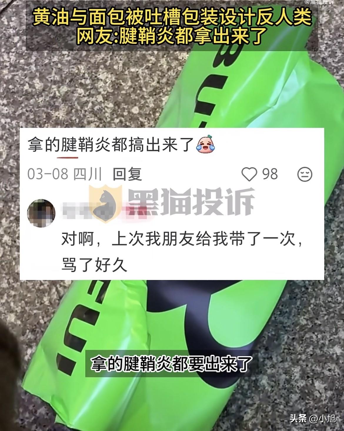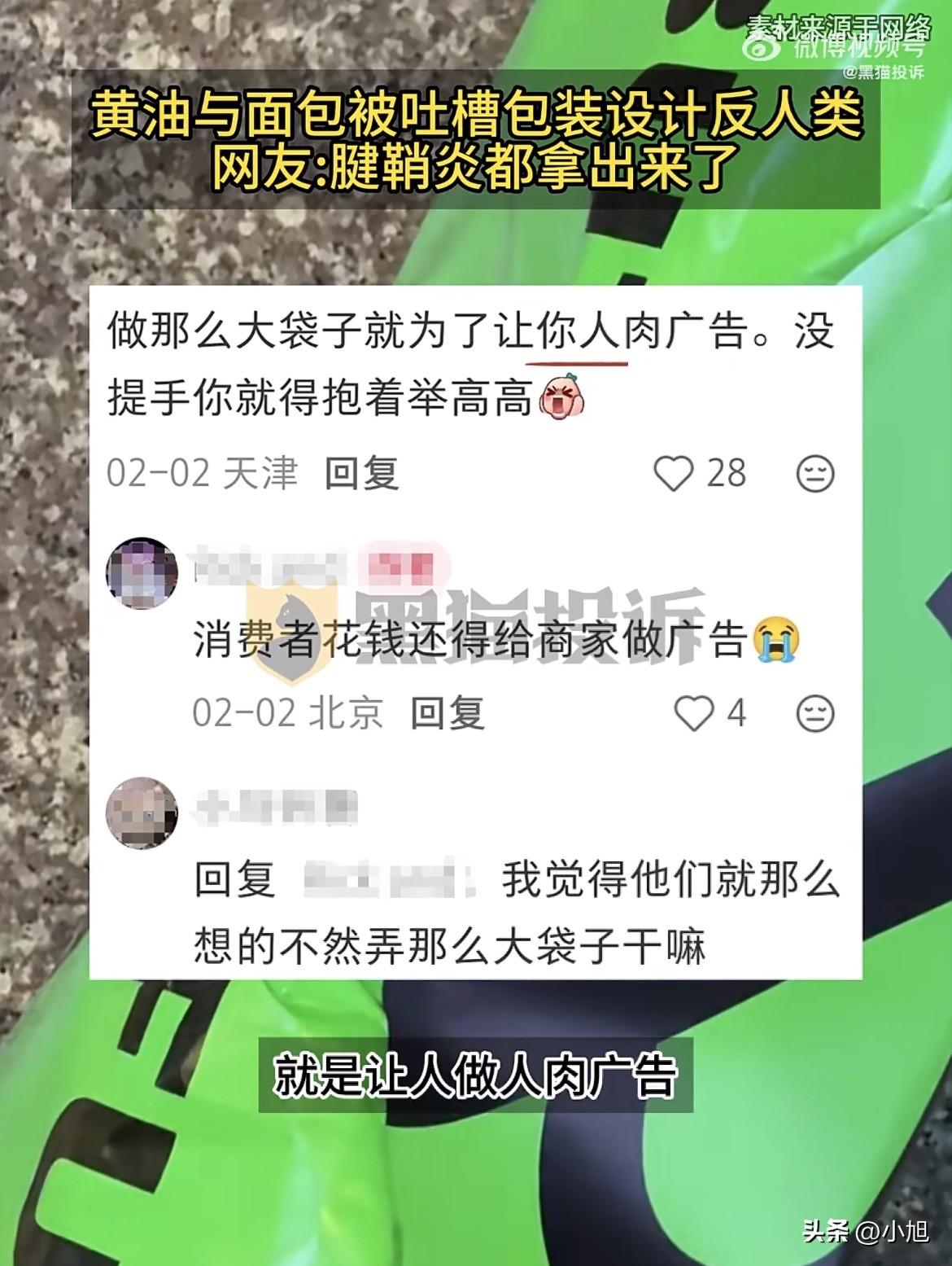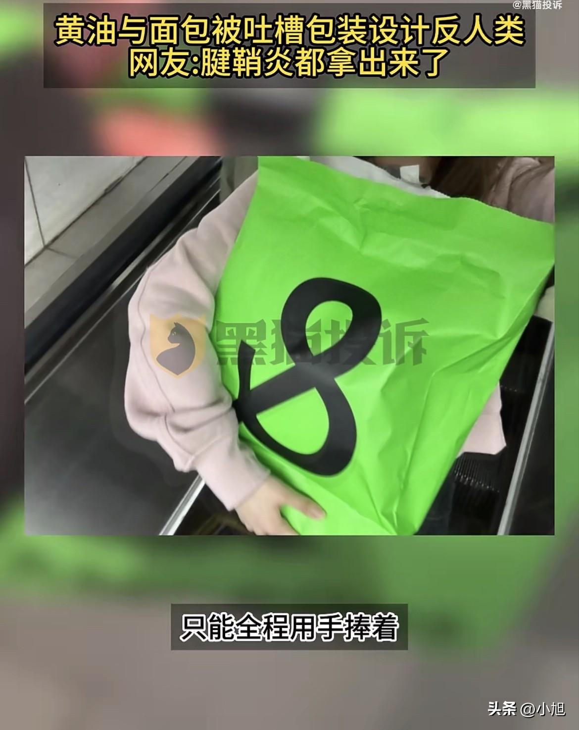 你捧着那个荧光绿的大袋子走在路上,两只手换着托,胳膊都酸了。走一段路就得停下来歇歇,手指头被袋子边勒出两道红印子。 这个袋子,没有提手,没有绳子,就光溜溜一个纸袋,封口处留了那么一小截让你捏着。稍微装点重的东西,底部就开始往下坠,里面的面包盒子晃晃悠悠,走回家打开一看,奶油糊了一袋子,酥皮碎了一地。 这是黄油与面包的标志性包装,荧光绿,扎眼得很。你走在路上,老远就能看见。 有网友说,拿了一路,腱鞘炎都要出来了。还有人说,走到半路真想直接把蛋糕扔了,袋子都快烂了。有人自己动手,在袋子上戳了两个洞,拿根绳子穿过去提溜着走。还有人干脆把袋子倒过来,把底部撕开当提手用。 一个姑娘在网上发视频,说她买完面包捧着回家,一路上换了八个姿势。最后实在撑不住了,把袋子夹在胳膊底下,走了两步,袋子滑了,面包撒一地。 她说,四十块钱买的面包,到家一看,跟被人踩过似的。 这个牌子,2020年进中国,第一站上海新天地。那时候就这个包装,就这个套路。黑金装修,水晶吊灯,面包放在珠宝展示柜里,跟奢侈品似的。门口排长队,三小时起,黄牛卖号,三十到六十不等。 这个荧光绿的袋子,是他们的招牌。有人管它叫“网绿面包”,就是那个显眼的绿色。 有商场的人说,这个袋子就是移动的广告牌。你捧着它走在路上,姿势别扭,走两步歇一下,路过的人都会多看两眼。这不就免费打广告了吗。 问题是,这个广告牌,是让顾客当的。 有网友直接说了,品牌方设计这个袋子,就没打算让你舒服地拎着,就是让你捧着,让你举着,让你在大街上当活广告。这话说得有点狠,但仔细想想,还真是这么回事。 2023年,这个牌子跟Max Mara联名,换了袋子颜色,卡其色的,跟大衣一个色系,又火了一把。后来又跟奥迪联名,跟野兽派联名,跟MARC JACOBS联名。每次联名都换个袋子,限量,抢着要。闲鱼上有人专门卖袋子,几十块钱一个。 他们自己说过,这个绿色从远处看特别扎眼,一眼就能看见,对吸引顾客进店很有帮助。他们还说过,联名是品牌保鲜的重要方式。 但你想想,一个面包店,最基本的不是让顾客舒舒服服地把东西带回家吗。你把包装搞得再好看,顾客拎着遭罪,面包到家也散了,下次谁还愿意排队三个小时去买。 有人给品牌找补,说这是环保,少用塑料提手。可环保归环保,你倒是把纸袋做结实点啊。那个袋子软塌塌的,稍微装点重东西就往下坠。 还有人扒出来,这个牌子在韩国起家的时候,袋子也没这么离谱。到中国之后,营销搞得风生水起,跟各种奢侈品跨界,包装越来越炫,实用性越来越差。 2025年7月,广州天环店出过事。有消费者买了开心果树莓塔,吃完拉肚子发烧,去医院检查是细菌感染胃肠炎。一个孕妇腹泻了快十次,还有个大学生花了四十块钱买面包,看病花了两千多。店里的面包就搁在柜子上,盖层薄薄的塑料膜,掀开了也不盖上,暴露在空气里。 当时监管部门介入调查了。但到现在,那个袋子还是那个袋子,没有提手,没有绳子,光溜溜一个纸袋。 有个网友说得挺实在,她说她买完面包出门,有个小姑娘问她,这面包好吃吗,袋子挺好看的。她当时想说实话,又觉得不好意思,就说了句还行。结果小姑娘也进去买了一个,出来的时候跟她一样,捧着袋子,一脸茫然地站在路边。 这大概就是所谓的网红效应。你花几十块钱买的不只是面包,还有这个让你走在路上被人多看一眼的机会。只是这个机会,得用你手指头的红印子和变形的蛋糕来换。 有人说,这个设计就是故意让人难受,这样才能让人一直捧着,让更多人看见。也有人说,人家大牌就是这么设计的,爱买不买。 但问题是,大牌的袋子好歹有根绳子能提着,你这光溜溜的,让人怎么拿。 你觉得这个包装,到底是为了装面包,还是为了装样子。 (信息来源:百度百科、黑猫投诉、界面新闻、羊城晚报、澎湃新闻、CBNData等公开报道)