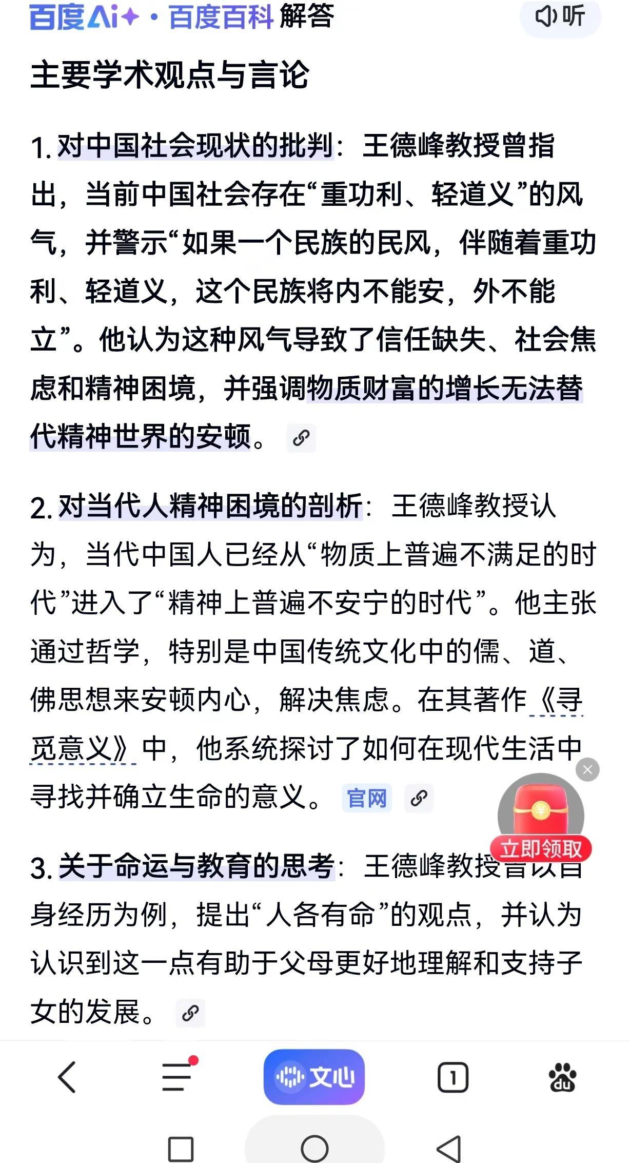 今天无意聊到考公和当下环境不好的话题,偶尔看到了复旦王教授的观点,真的是,当下很多人都处于一种焦虑的状态,大环境不好,钱难挣,可比起前十年,很多家庭都过得好很多了,看一个人,是看房子,票子,位子,而不是良心,道德,甚至有的人为了所谓的成功,去银行借款装饰自己,一边在抱怨当下教育的恶习,却又花高资去把孩子送进补习班,一边在厌恶当下的医生和教师的做派(不是绝对),却又巴不得自己的孩子能进,大环境不好,其实自己可能是参与者,但亦是受害者,就像王教授说的,不能重功利,轻道义,人各有命,不是所有人都那么出类拔萃,我们做好自己,是医生好好救死扶伤,是老师,好好教书育人,是商人,赚属于自己利润的良心钱,尊重社会每个阶层的人,社会和谐,我们放好心态,少点焦虑,把健康的活着放第一位,把车子,房子,位子,往后面放放,当然这不是让人躺平,是在自己能力范围内去拼搏,而不是为了目的耗尽自己所有的力量,伤害自己也拖垮家庭,我们应该接受自己的平庸,爱人的平庸,以及孩子的平凡,只要是一个有责任心的人,永远差不到哪里去,