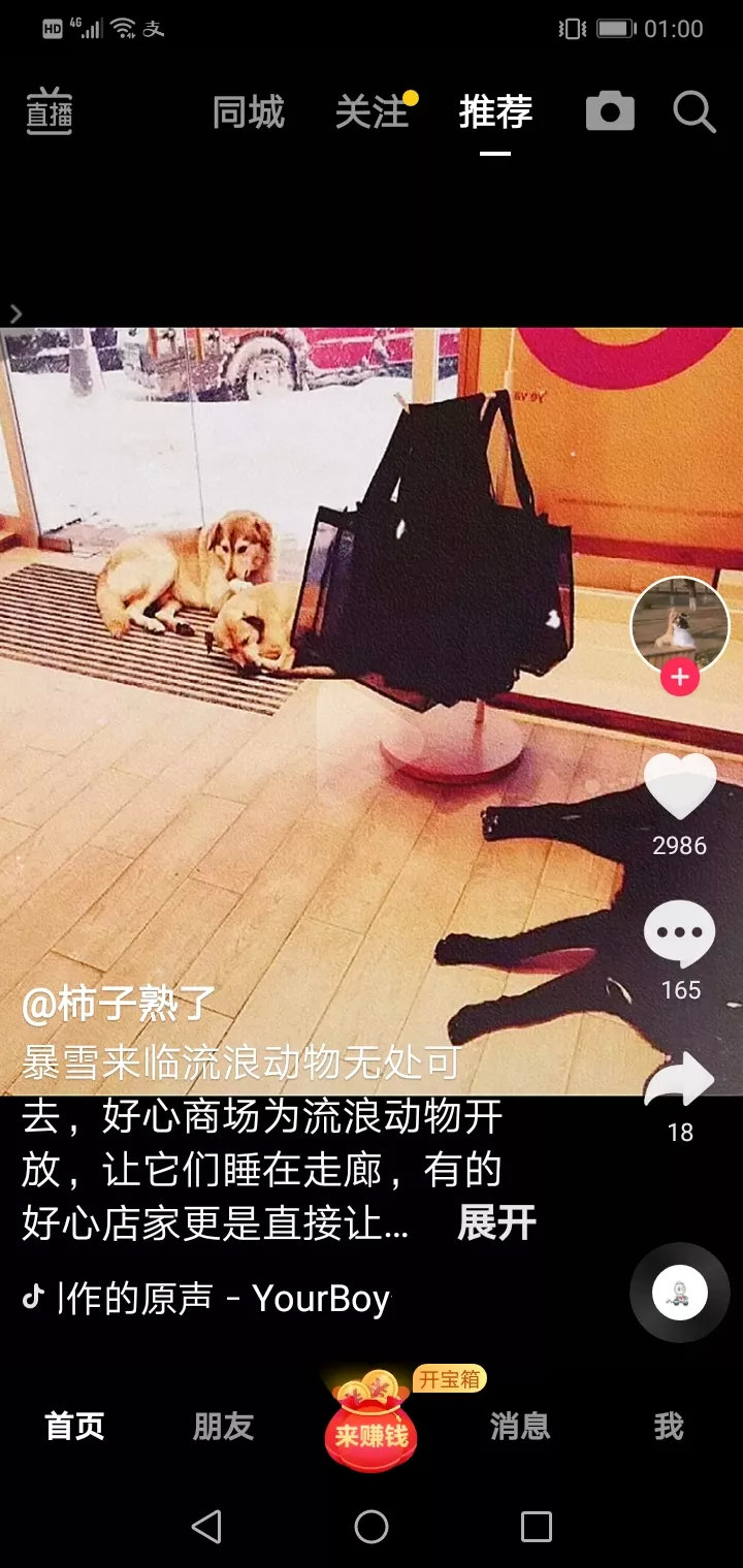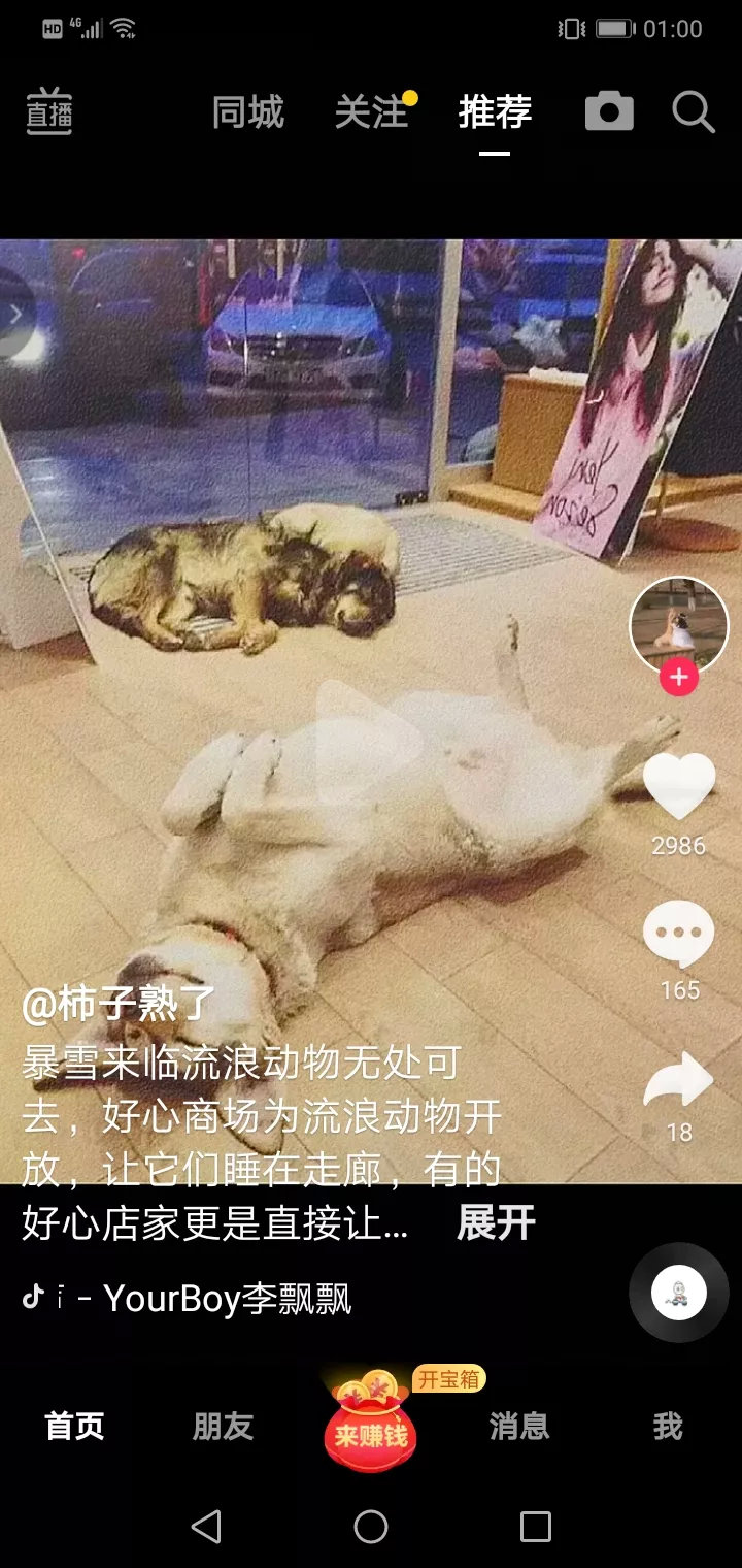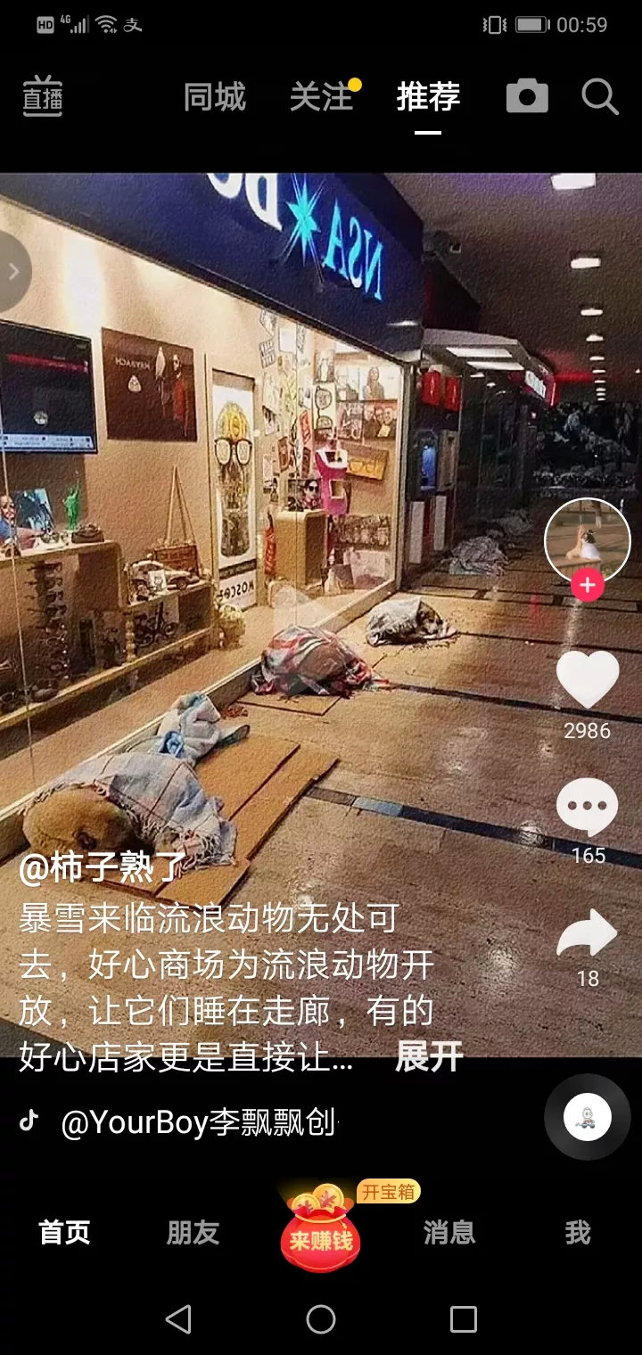 暴风雪来临了,流浪狗无家可归,好心的商场为流浪狗开放,让它们睡在走廊。有的商场甚至让流浪狗进商场,为它们开启空调,有的流浪狗还是小心翼翼的睡在门口,好心人为它们盖上毯子。多么温馨感人,但还是会流泪,因为想到国内的流浪狗!