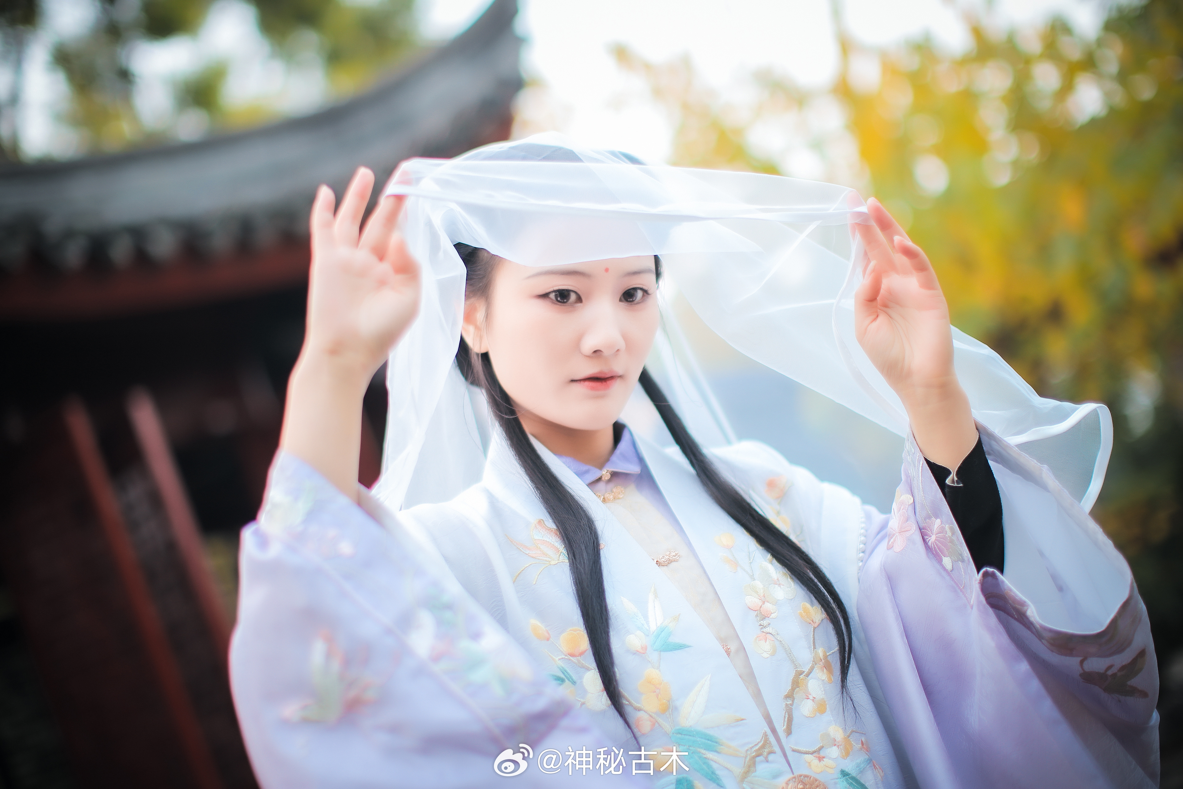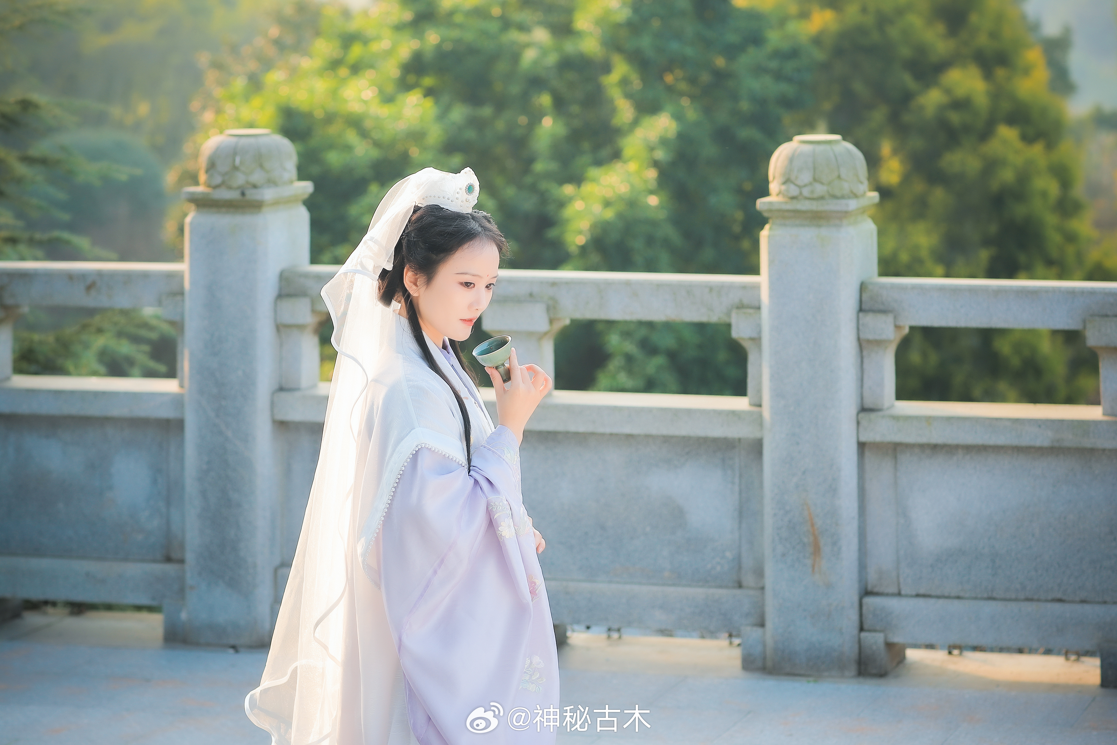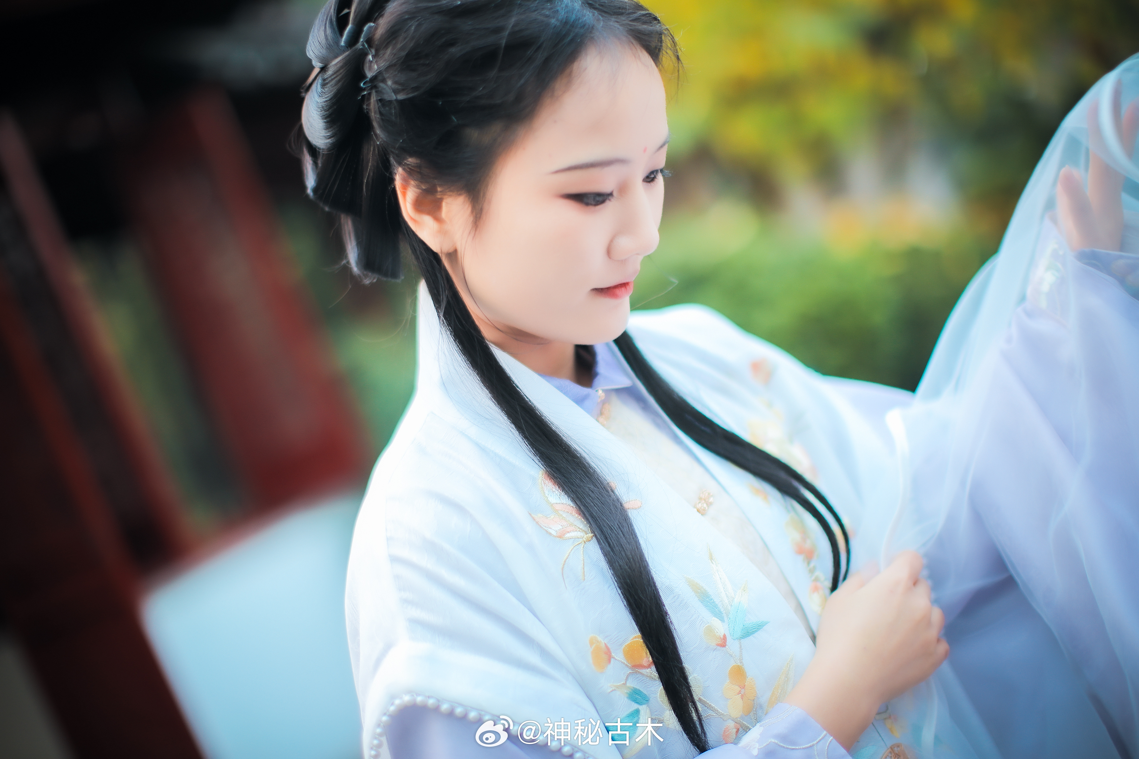 仙气飘飘的汉服美人,头戴孔雀发饰,清新脱俗!