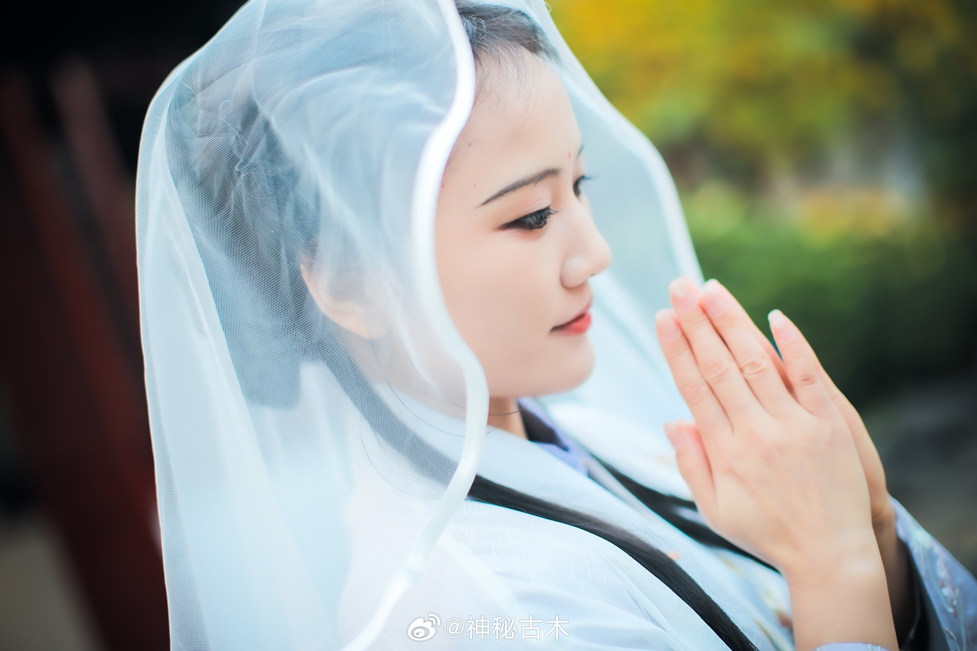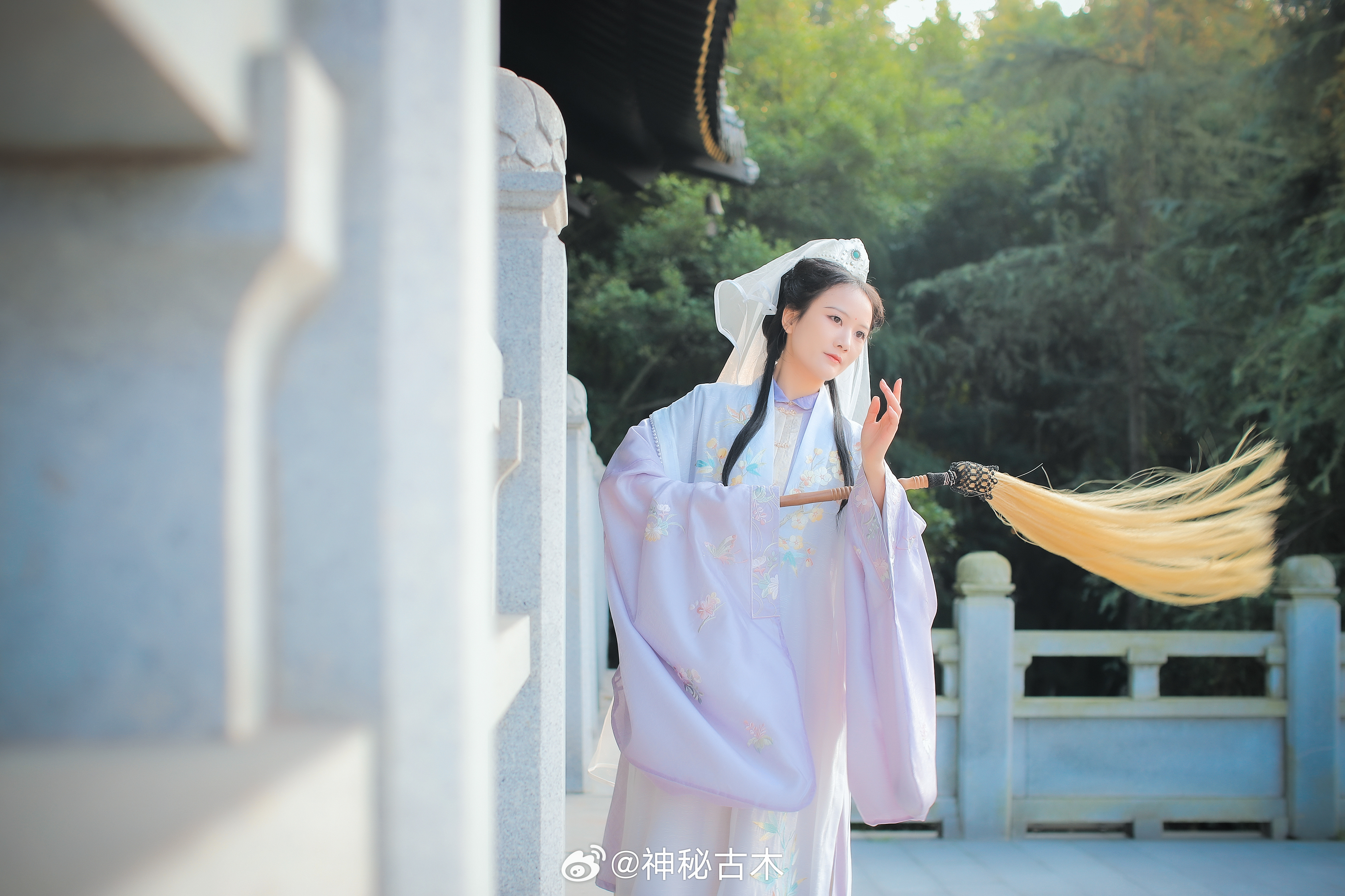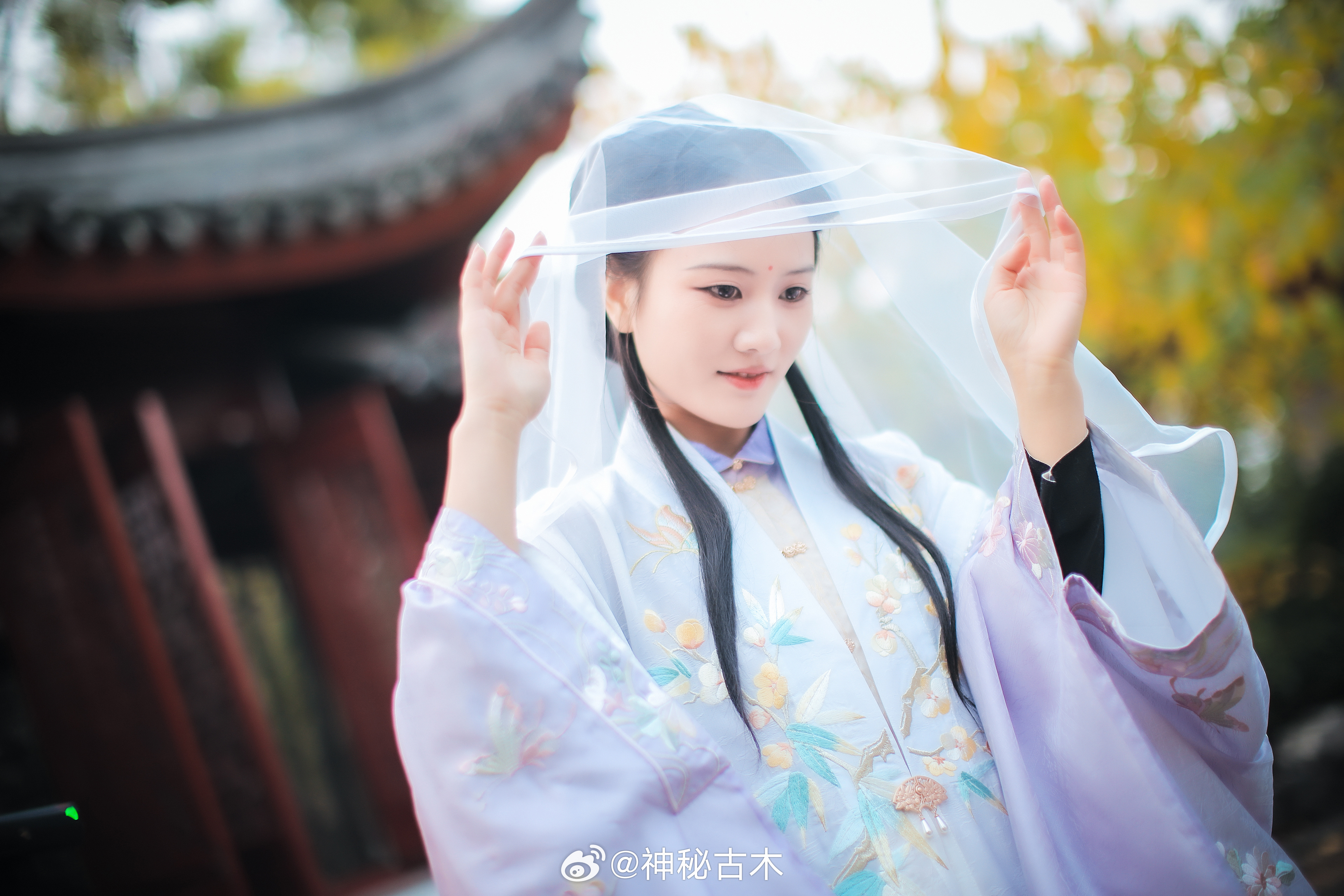 仙气飘飘的汉服美人,头戴孔雀发饰,清新脱俗!