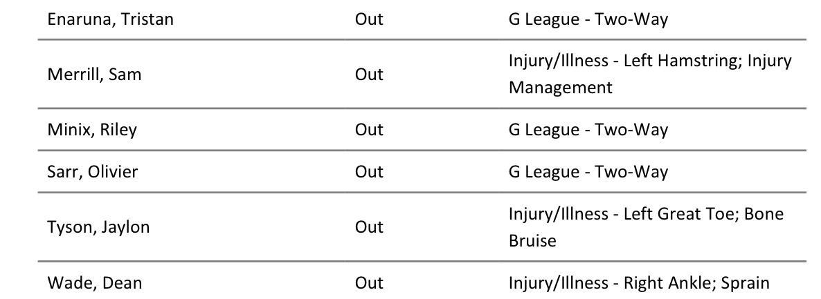 骑士6人无法出战,除了泰森和韦德以外的主力球员都可以打。