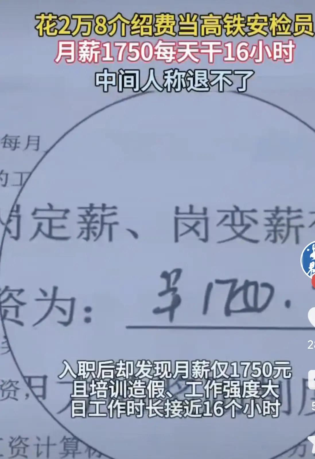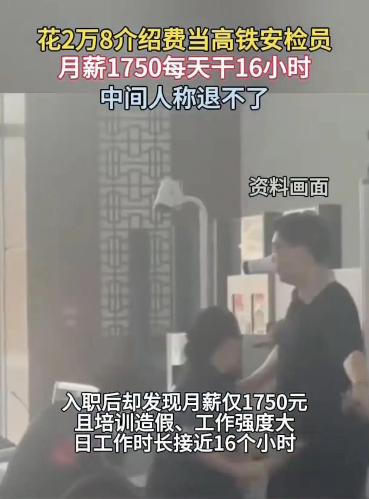 2.8 万买份“铁饭碗”?入职月薪 1750 狂干 16 小时!起底中介吃人黑幕,无数普通人血汗钱打水漂! 你以为花钱就能端上“国企铁饭碗”?你以为交了介绍费就能轻松进入高铁系统,从此衣食无忧?醒醒吧!这根本不是什么改变命运的捷径,而是一场精心包装、针对普通人的“杀猪盘”! 近日,广东阳江、云浮等地爆发了一起令人触目惊心的求职骗局。无数怀揣着稳定工作梦想的求职者,被所谓的“内部关系”、“国企编制”迷花了眼,乖乖掏出了少则一万二、多则两万八的巨额“介绍费”。然而,当他们满怀期待地戴上工牌,迎接他们的不是光鲜亮丽的安检员制服,而是地狱般的劳作与绝望的深渊。 涉事公司郑州铁鹰安检保安有限公司深圳分公司,堪称当代“周扒皮”的教科书式反派。他们打着“高铁直招”的幌子,实则行的是劳务派遣之实。那些信誓旦旦承诺的“正式编制”,在签下合同的那一刻就化为了泡影。更让人窒息的是待遇:月薪仅仅 1750 元!没错,你没看错,这就是贴着当地最低工资标准底线摩擦的薪水。拿着这点钱,却要承受每天长达 16 小时的高强度工作。从清晨到深夜,连轴转的工作节奏,简直是把人当机器用,甚至连机器都需要保养,而这些劳动者却被榨干了最后一滴油水。 这哪里是找工作?这分明是花钱买罪受!想象一下,你掏空了家里的积蓄,甚至背上了债务,只为换来一个每天工作 16 小时、月入不到两千的岗位。这种极度的付出与回报不对等,简直就是赤裸裸的剥削。中介团伙深谙人性弱点,他们利用信息差,将“高铁安检”、“国企名额”包装成稀缺资源,制造焦虑,让急于求成的求职者失去理智判断。一旦钱进了口袋,之前的承诺瞬间作废。培训造假、合同陷阱、退费无门,这一套组合拳下来,普通人只能哑巴吃黄连,有苦说不出。 我们必须大声疾呼:中介行业的某些乱象,已经到了非治不可的地步!在这个链条中,黑心中介如同吸血的水蛭,死死吸附在普通劳动者的身上。他们只手遮天,编织谎言,将一个个鲜活的人当成待割的“猪仔”。在他们眼里,求职者不是需要帮助的人,而是行走的钱包。所谓的“打点费”、“疏通费”,不过是他们中饱私囊的借口。这种把黑手伸向底层百姓救命钱的行为,不仅是道德的沦丧,更是对法律底线的公然挑衅! 为什么这样的骗局屡禁不止?因为贪婪蒙蔽了双眼,因为监管存在盲区,更因为太多人还抱有“走捷径”的侥幸心理。请记住,天下没有免费的午餐,更没有花钱就能买到的“内部名额”。任何声称“保过”、“包分配”的话术,都是诈骗的标准剧本。真正的国企招聘,流程公开透明,绝不会通过私人中介收取高额费用。 面对如此猖獗的黑中介,我们该如何自我保护?第一,擦亮双眼,拒绝任何形式的“付费入职”。凡是还没上班就先让你交钱的,99.9% 都是骗子。第二,善用工具,在签订合同前,务必通过“天眼查”、“企查查”等权威平台核实用人单位资质。像新闻中的这家保安公司,稍一查询便知其与高铁直属单位毫无关系,纯属挂羊头卖狗肉。第三,保留证据,一旦发现受骗,立即收集聊天记录、转账凭证、合同文件,勇敢地向劳动监察部门举报或寻求法律援助。 这场发生在广东的悲剧,不应只是茶余饭后的谈资,而应成为警钟长鸣的号角。每一个被坑害的背后,都是一个破碎的家庭,是一份被践踏的希望。我们呼吁相关部门重拳出击,彻查此类黑中介链条,斩断伸向普通人的黑手,让违法者付出惨痛代价!同时,也请每一位正在找工作朋友转告身边的亲人:踏实做事,远离“付费内推”,别让辛苦攒下的血汗钱,成了黑心中介狂欢的盛宴! 正义或许会迟到,但绝不能缺席。对于这种吃人不吐骨头的黑中介,必须曝光到底,让他们在阳光下无处遁形!如果你也经历过类似的职场陷阱,或者身边有亲友受害,请在评论区留言,让我们一起揭露黑暗,守护公平!中介行业困境 劳务黑幕 婚恋中介套路