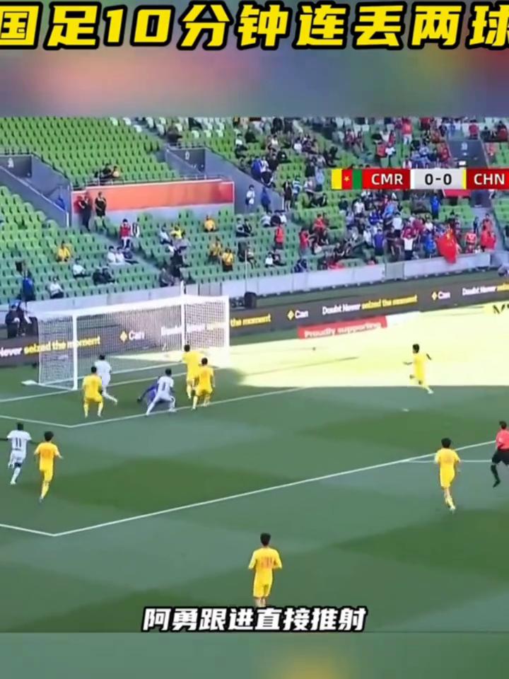 国足10分钟连丢两球。 国足在邵佳一带领下迎来第二场友谊赛,可仅仅10分钟就连丢两球。 ·第3分钟,卡麦隆后场发起进攻,阿里乌姆带球推进,突然送出一脚直塞,阿勇跟进直接推射,攻破了严俊麟把守的大门。我们的注意力还是不够集中,三脚传递就撕破我们的防线。 ·第9分钟,卡麦隆战术角球,纳吉达传中,队友前点头球摆渡,后点阿里乌姆抽射再下一城。 我们总是看球不看人,前点后点都漏人,赛后真得好好总结下了,国足加油吧!