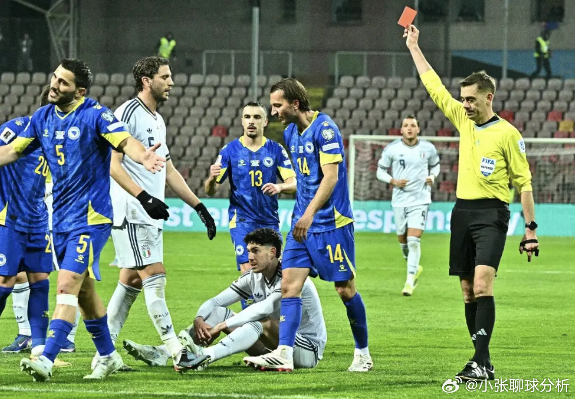 第41分钟,场上出现转折。波黑球员拿到单刀机会,巴斯托尼忙中出错,将其踢倒。裁判直接将巴斯托尼罚下。意大利队少一人作战。