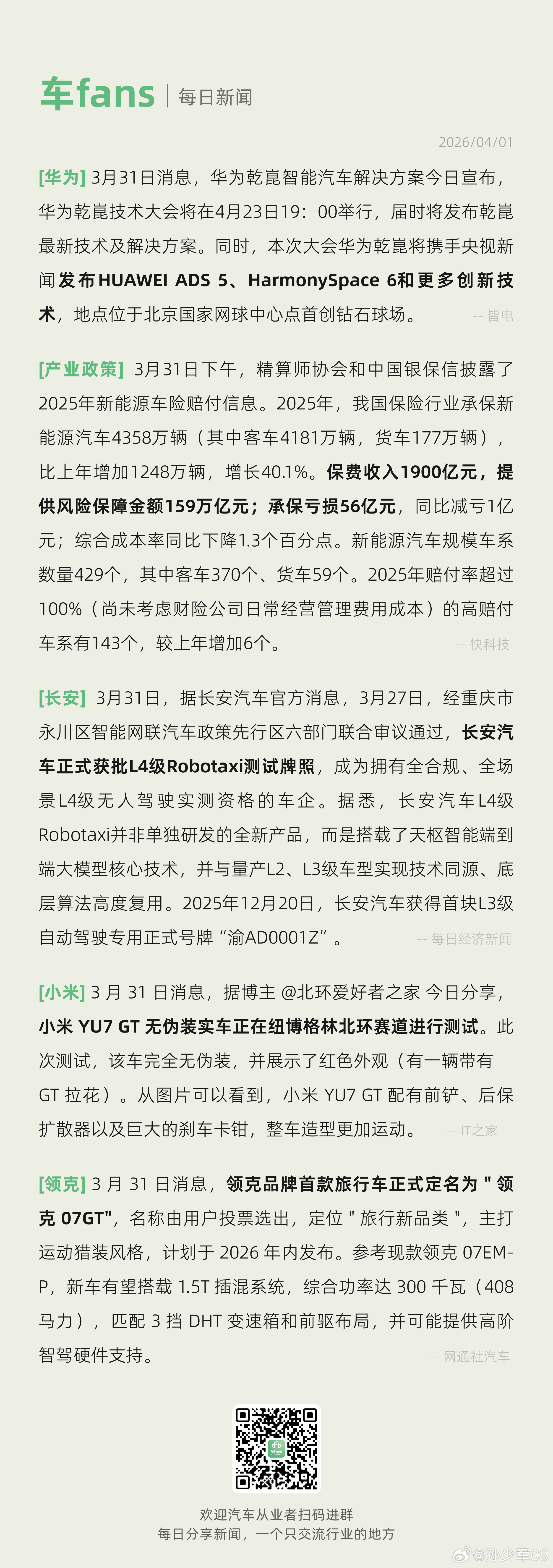 保费收入1900亿元,提供风险保障金额159万亿元,承保亏损56亿元,同比减亏1亿元;综合成本率同比下降1.3个百分点。新能源汽车规模车系数量429个,其中客车370个、货车59个。2025年赔付率超过100%(尚未考虑财险公司日常经营管理费用成本)的高赔付车系有143个,较上年增加6个。
