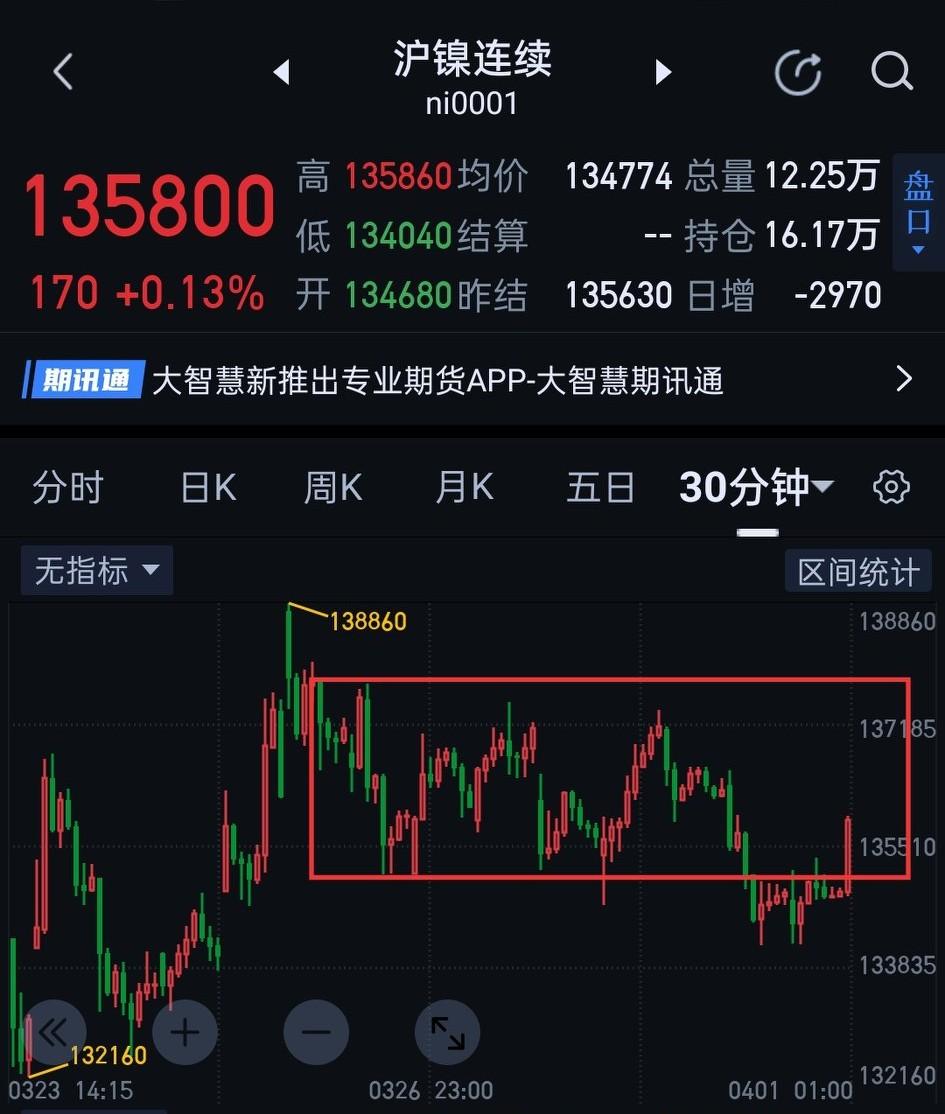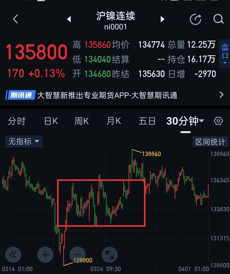 沪镍,最近走势很是寡淡无趣。 沪镍夜盘,站稳了昨天阐述的关键点位134030,重新回到了图(2)中枢内。 日盘操作,观察是否能形成图(1)秒级中枢的三买结构。三买形成,暂用图(2)中枢震荡视角跟随。若未形成三买,不免仍会围绕图(3)区间震荡。