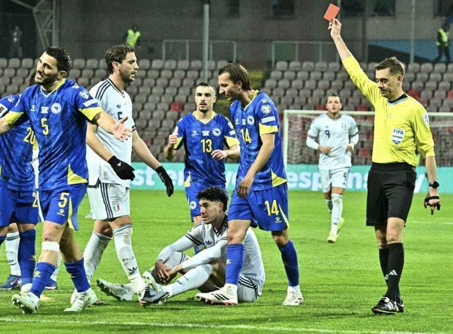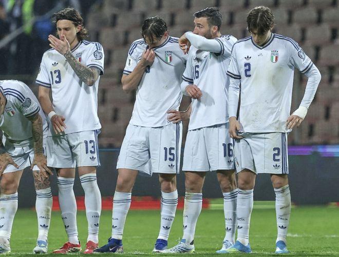 【意大利是怎么被波黑淘汰的,国际米兰有双坑】点球大战1-4败下阵来,意大利队罚丢点球的球员都来自哪些俱乐部?意大利罚丢点球的两名球员: 1. 皮奥・埃斯波西托(Pio Esposito) 俱乐部: 国际米兰(Inter Milan) 点球: 第一轮 踢飞(高出横梁) 身份: 19 岁小将,替补登场 2. 布莱恩・克里斯坦特(Bryan Cristante) 俱乐部: 罗马(AS Roma) 点球: 第三轮 击中横梁弹出 身份: 中场主力,替补登场 唯一罚进的: 桑德罗・托纳利(Sandro Tonali) 俱乐部: 纽卡斯尔联(Newcastle United) 第二轮命中 天啦!拿红牌的和踢飞点球的,都有来自咱国际米兰的。 红牌罪人,国米亚历山德罗・巴斯托尼(Alessandro Bastoni) 俱乐部:国际米兰(主力中卫) 事件:第 41 分钟,防线最后一人铲倒单刀的梅米奇,直接红牌罚下。 影响:意大利少打 1 人,从领先 1 球变成被动死守,直接导致被扳平、拖入点球。 点球罪人,国米皮奥・埃斯波西托(Pio Esposito) 俱乐部:国际米兰,19岁小将 事件:点球大战第一轮直接踢飞,意大利开局就落后。 影响:彻底打乱点球节奏,后续克里斯坦特又中横梁,最终 1-4 惨败。 国米双 “坑” 一张红牌(巴斯托尼):把球队拖入绝境。 一脚踢飞(埃斯波西托):把晋级希望彻底送走。 两个国米球员,亲手把意大利连续三届送回家。