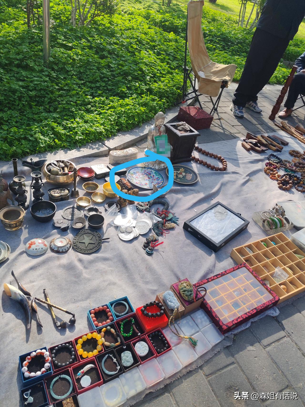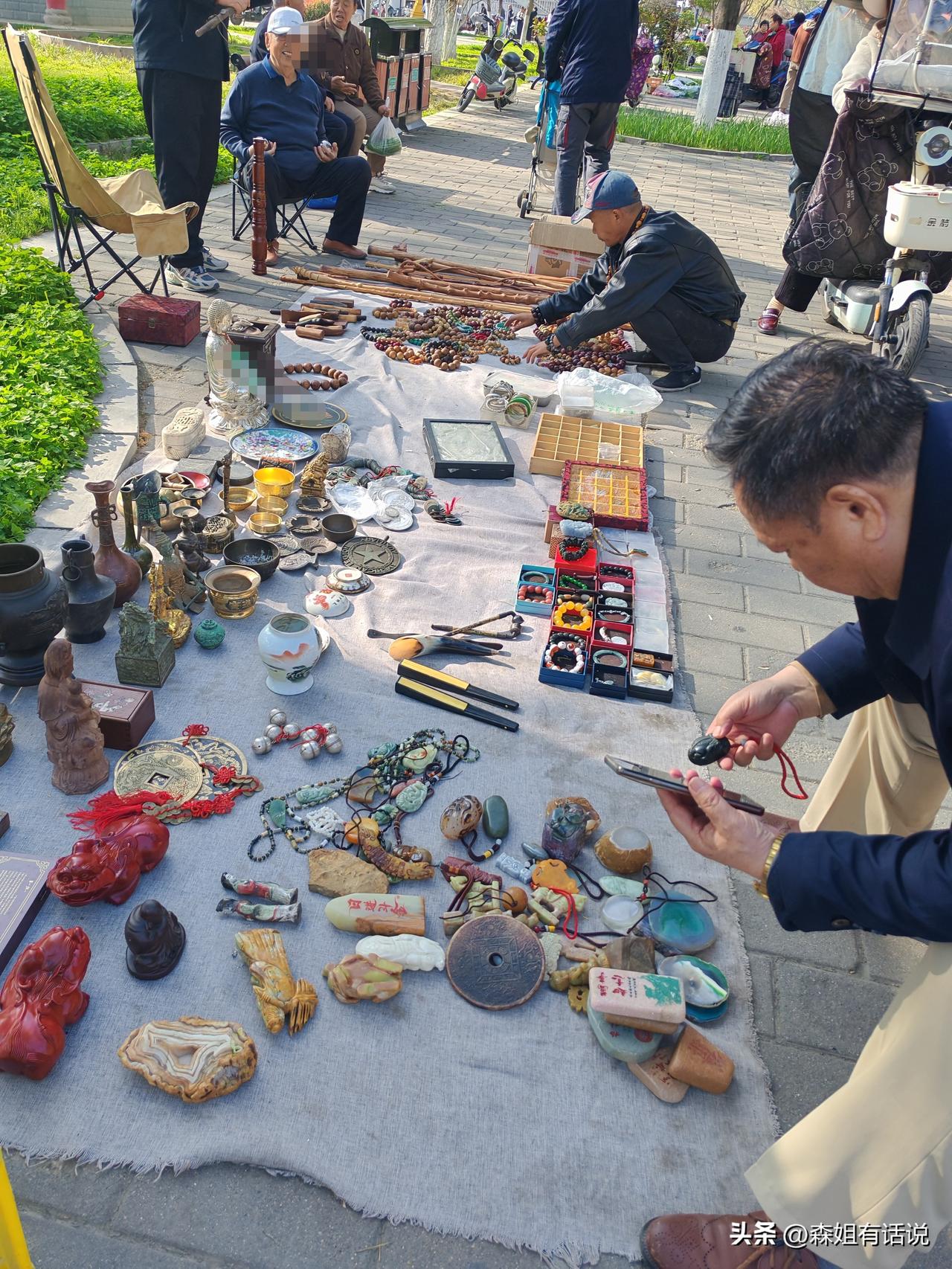 又是一个被玩废的行业 这是我昨天路过西安一公园早市随手拍下的几张图片,感觉文玩这个行业前景黯淡。 帽子大叔的摊上货品多多,核桃、拐杖、葫芦、根雕、桃木手串、玛瑙手串、玉坠子玉手串、银元宝、还有一些瓶瓶罐罐,琳琅满目,种类繁多。 围观的基本都是中老年人,一个大叔正在蹲下来观摩,打开手机查资料对比,一个30来岁的兄弟拿起图二的盘子瞧了瞧,听摊主说卖价300,他又放下了。 我的感觉是看的人多,买的人少,现在大家在文玩摊位更多的是看热闹。文玩摊能捡漏吗? 答案是“能”,十几年前,我公公在大唐西市50元淘了一个小碗,前几年出手卖了3000多。 但那只是过去了,现在能捡漏的机会越来越少,这行的水深,看走眼是常有的事。 现在科技活多,山河某省仿古技艺炉火纯青,有时候,你以为捡到的宝也许还烫手着呢。 现在想买的人慎重了,已不敢轻易入手,曝出了多起注胶染色玉镯和绿松石,塑料味的蜜蜡,漂白菩提,树脂压成的文玩核桃,还有石英岩冒充和田玉等。 这个行当到处是坑,一不小心就入局,大伙儿都怕了,有少量人买,但大多就是买个怀旧感,自己玩玩而已。 地摊上很难淘到真家伙,或者说压根就没有,你们觉得还能捡漏吗? 文玩