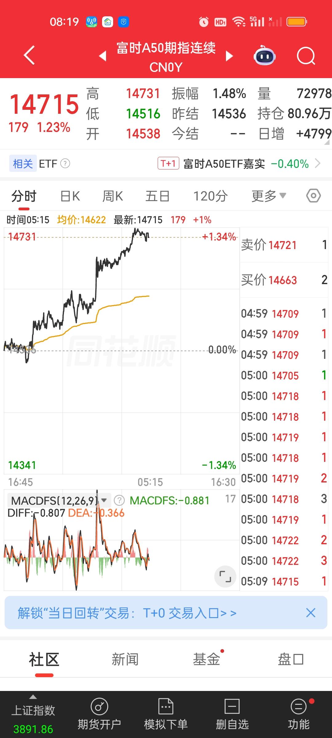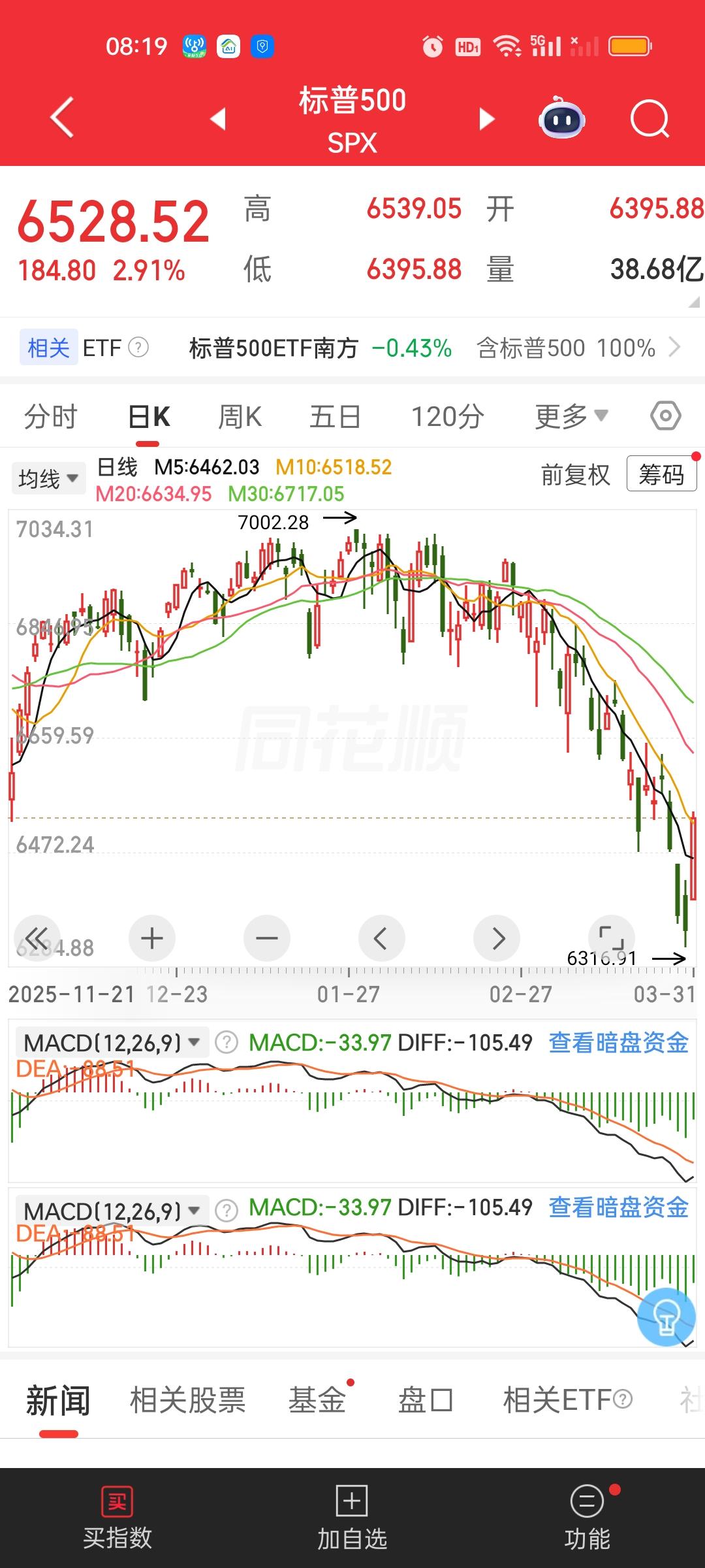 收盘了,美股如此巨大幅度的暴力反弹很久没有遇到了啊。其中道指收盘暴涨1125点,纳指收盘暴涨800点,涨3.83%,标普500也涨了2.91%,富时A50期指,日经225指数主连,港股恒生指数主连。恒科期指都是大涨的状态。另外人民币持续升值。我们今天至少高开稳了。