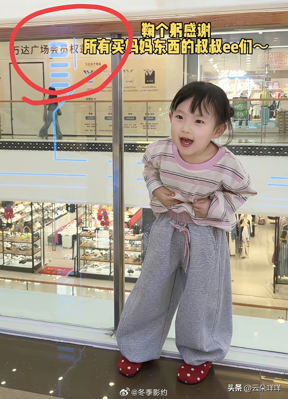 黄一鸣可太会了!她带着闪闪到万达广场了!闪闪对着镜头大喊,叔叔姨姨们,卖童装卖衣服快来捧场呀!看闪闪为了帮妈妈,多么的卖力!这孩子可真是懂事啊!黄一鸣换了赛道,改卖童装了,闪闪就是黄一鸣的小模特,闪闪白白净净的,长的也可爱,穿什么都好看!前段时间,黄一鸣还给闪闪报了模特课,闪闪学的有模有样的!黄一鸣确实挺会给女儿打扮的,这身穿搭休闲又时尚!闪闪扎着两个小丸子头,很有范儿!