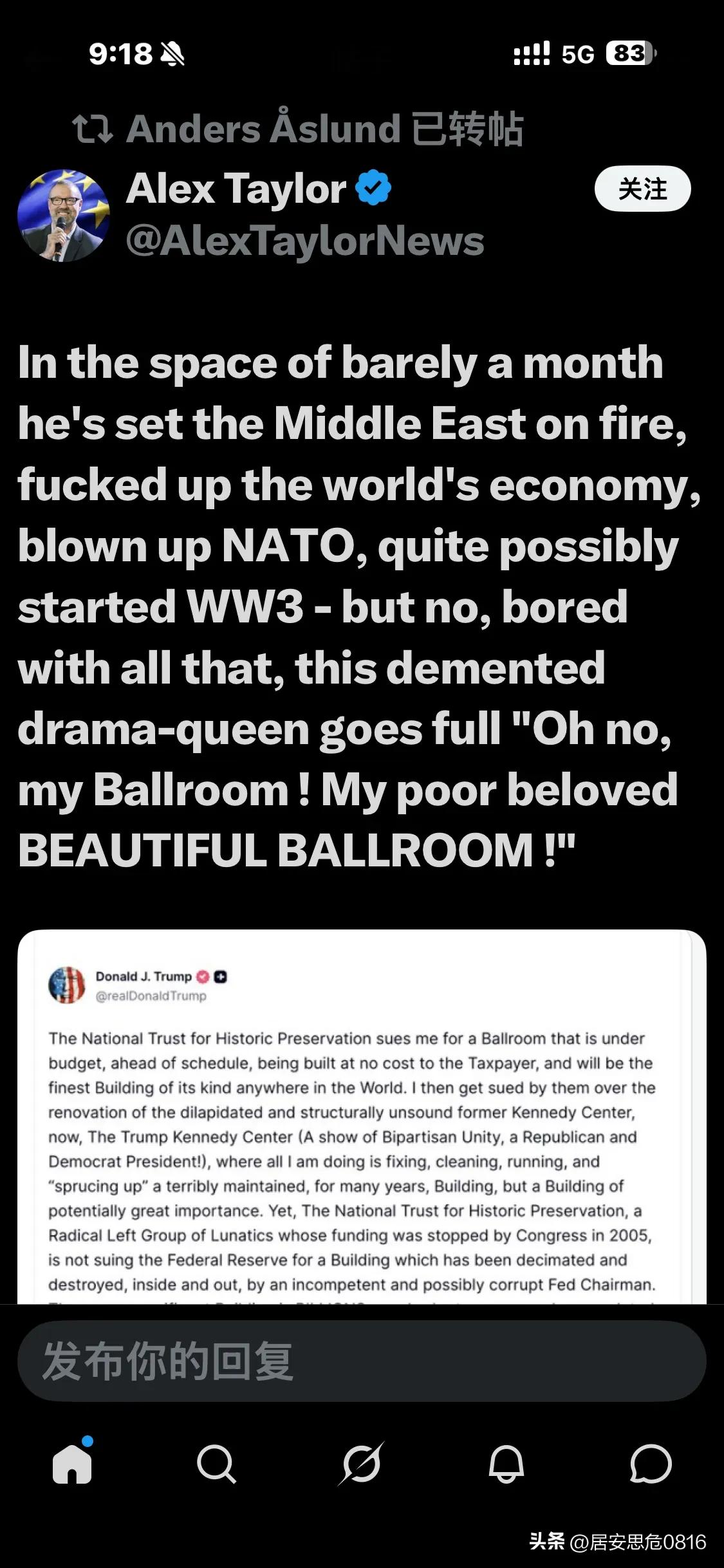 在不到一个月的时间里,他点燃了中东,搞砸了世界经济,炸毁了北约,很可能开始了第三