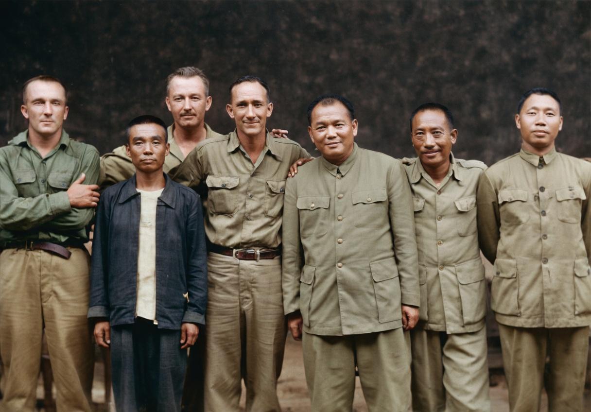 这张合影是抗战时期,国民政府军统局核心高层,与中美特种技术合作所美方军官同框照。 穿深色衣服,最矮的是军统顶级潜伏特务沈之岳,有“隐身特工”之称,他曾以进步学生身份成功潜伏延安,打入我党核心圈层,后安全撤离回到军统,历任军统要职。赴台后,他出任台湾军情局局长,主导台湾情报系统数十年,是军统后期的核心灵魂人物之一。 左二的是戴笠,军统实际最高负责人,被称为“民国特工之王”,是蒋介石最信任的核心亲信。1943年中美合作所成立后,戴笠任主任,主导军统与美军的全面合作。 左三的是王天木,他是是军统老牌元老,军统“四大金刚”之一,历任军统天津站站长、上海区区长,是军统华北、华东情报网的开创者,曾主导刺杀汉奸张敬尧等著名锄奸行动。1939年他在上海被日军逮捕后投敌,沦为汪伪76号特工总部高级顾问,抗战胜利后被戴笠特赦,是军统史上最具争议的叛徒人物。 左一的是陈恭澍,他是军统“四大金刚”之首,被称为“军统第一杀手”,以敌后锄奸闻名。他历任军统天津站站长、上海区区长,主导了刺杀汉奸张敬尧、汪精卫(未遂)等一系列震惊全国的锄奸行动,是军统敌后抗日的核心旗帜性人物。 合影中的外籍军官,均为中美合作所派驻的美军训练人员。1943年中美合作所成立后,美军派遣大量军官来华,为军统忠义救国军提供美式训练、武器装备和情报支持,配合美军在西太平洋的对日作战。