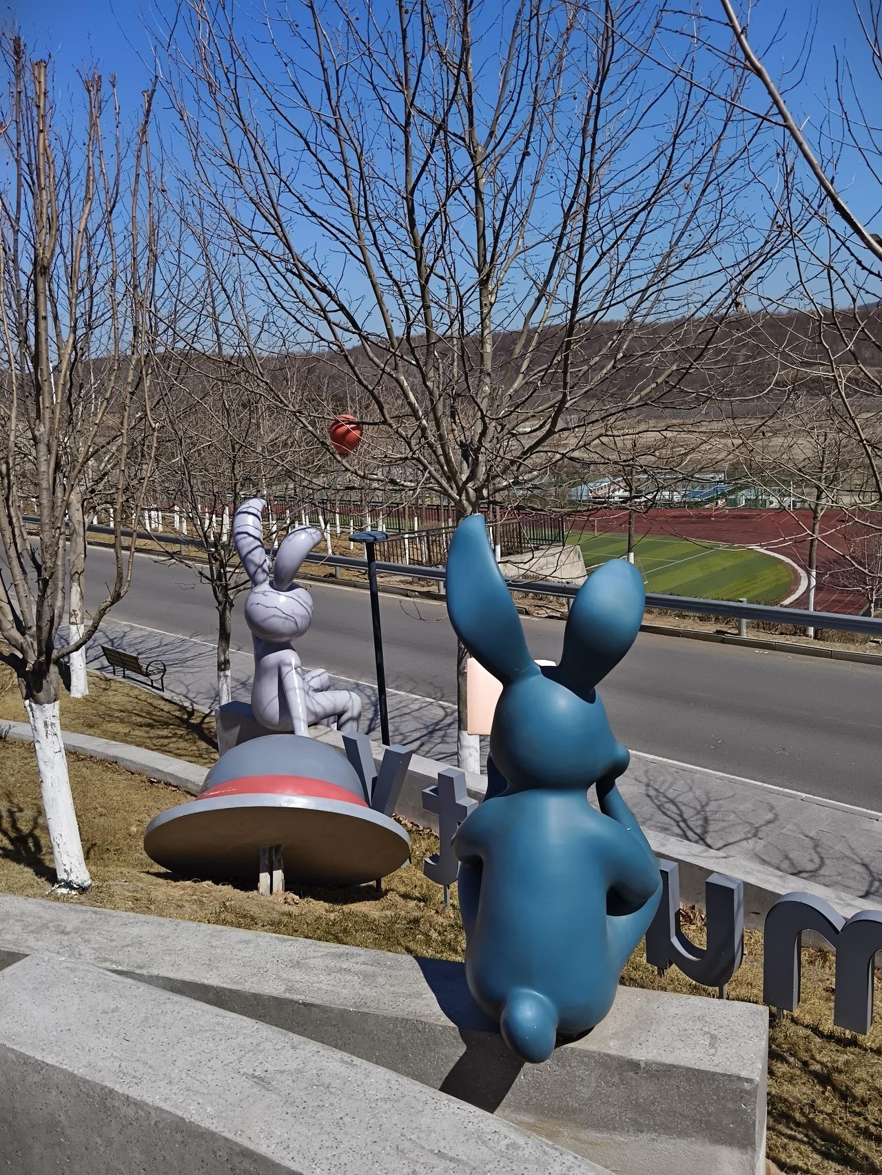 永远努力学习的“兔子”同学,在大连的一所大学里,有一座小山包,半山腰坐着“兔子同学”,他端着书全神贯注地看着,不畏风寒暑湿,不管白天黑夜,永远专注永远不被打扰,学生们上课,下课都在他在身边走过,不受干扰努力钻研的学风已经在这所大学里巍然形成,因为兔子学长无言的表率。
