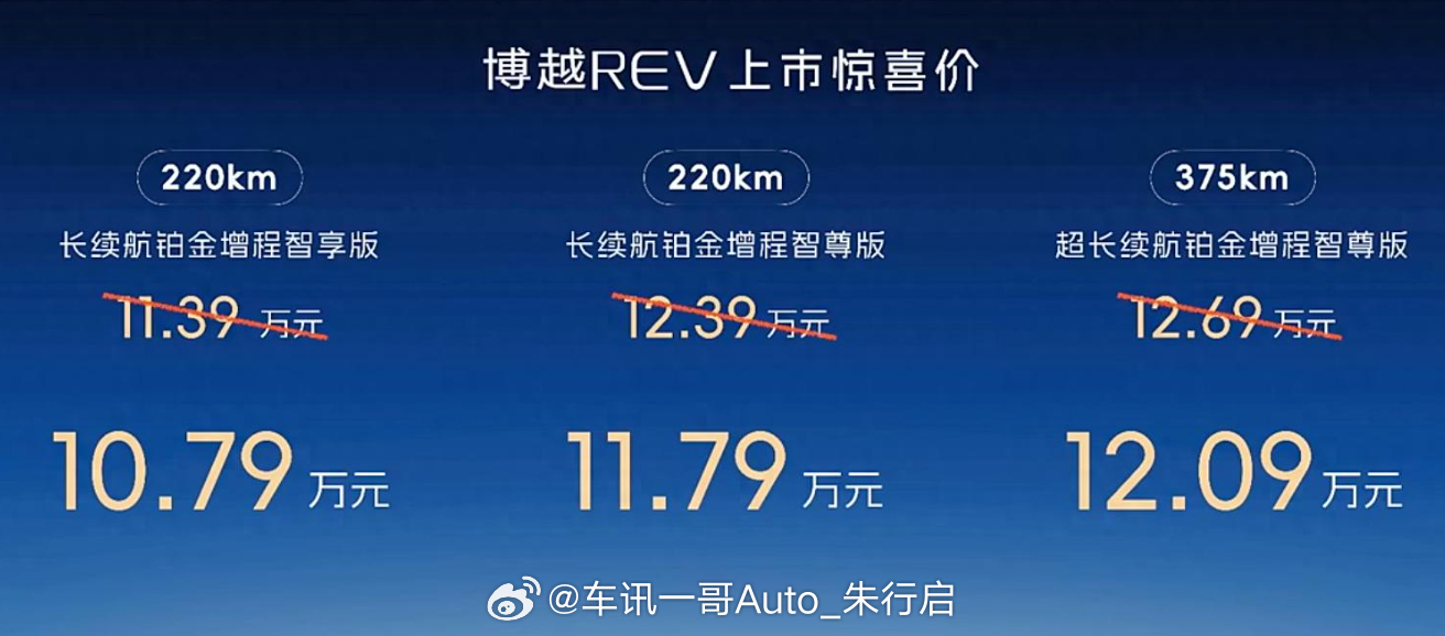 吉利全新增程式SUV,吉利博越REV上市,共推出三款车型,11.39万起。新车搭载1.5升增程动力系统,CLTC纯电续航最高375公里。