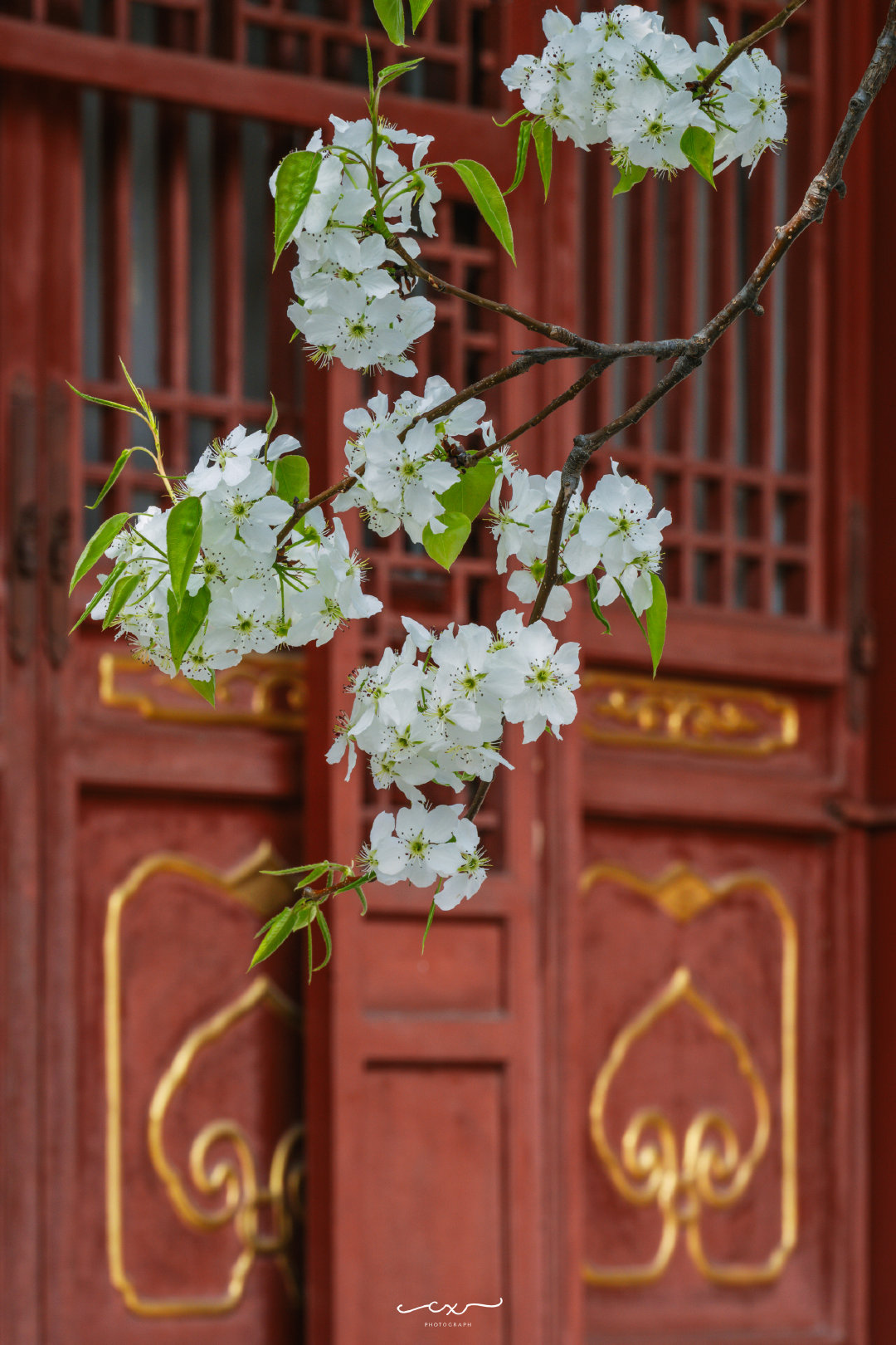 朱牆白雪,梨花正好。