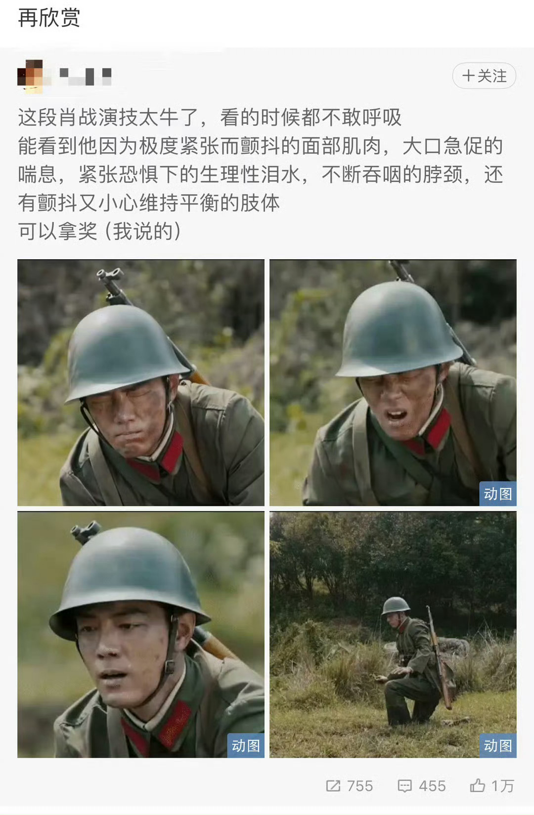 只有愚人节我才敢看这个演技…其实肖战的演技是很稳定的,能保持每部剧都能皱眉瞪眼一个表情,这不是一般人能做到的… 影帝(愚人节开个玩笑别当真)