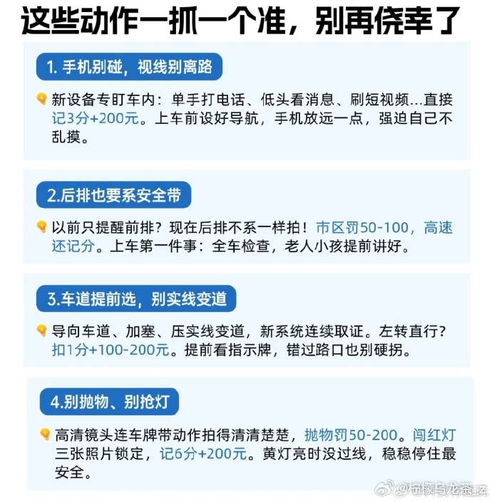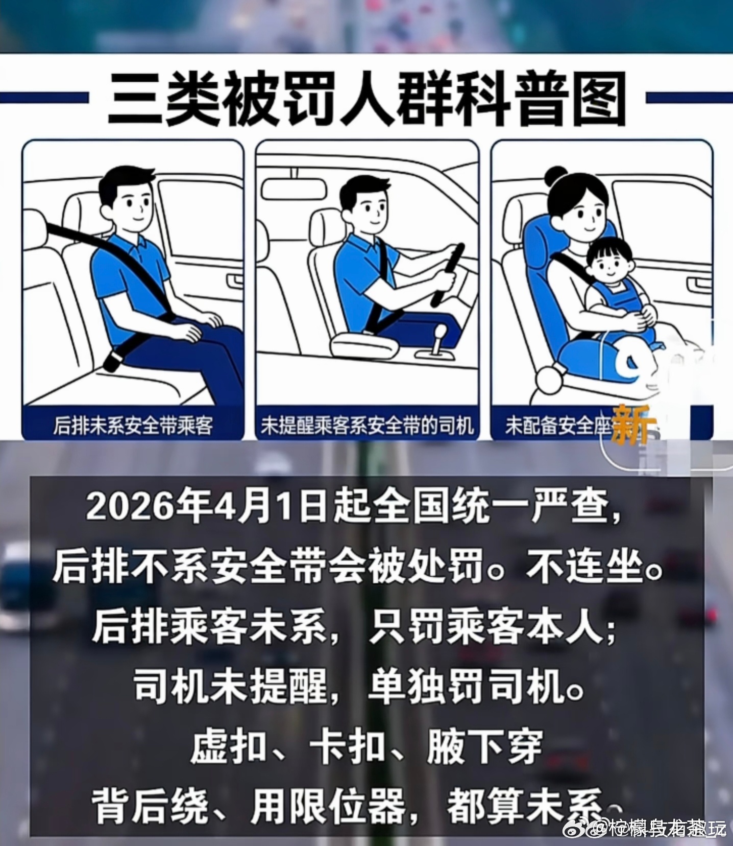 4月1日起全国严查后排未系安全带 说实话深圳好像早都是强制要求了,我觉得这个规定就挺好的,系安全带是为自己的安全考虑,就跟非机动车强制带头盔一样,自己的安全还非得别人强制。还是上一辈的义务教育做的不够到位,建议多播放一点没系安全带的突发事故,让他们好好意识一下。