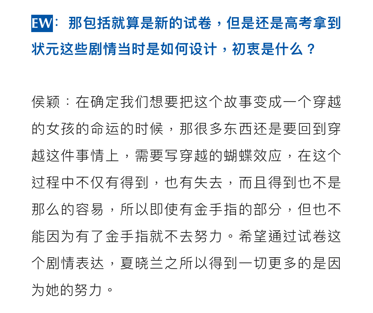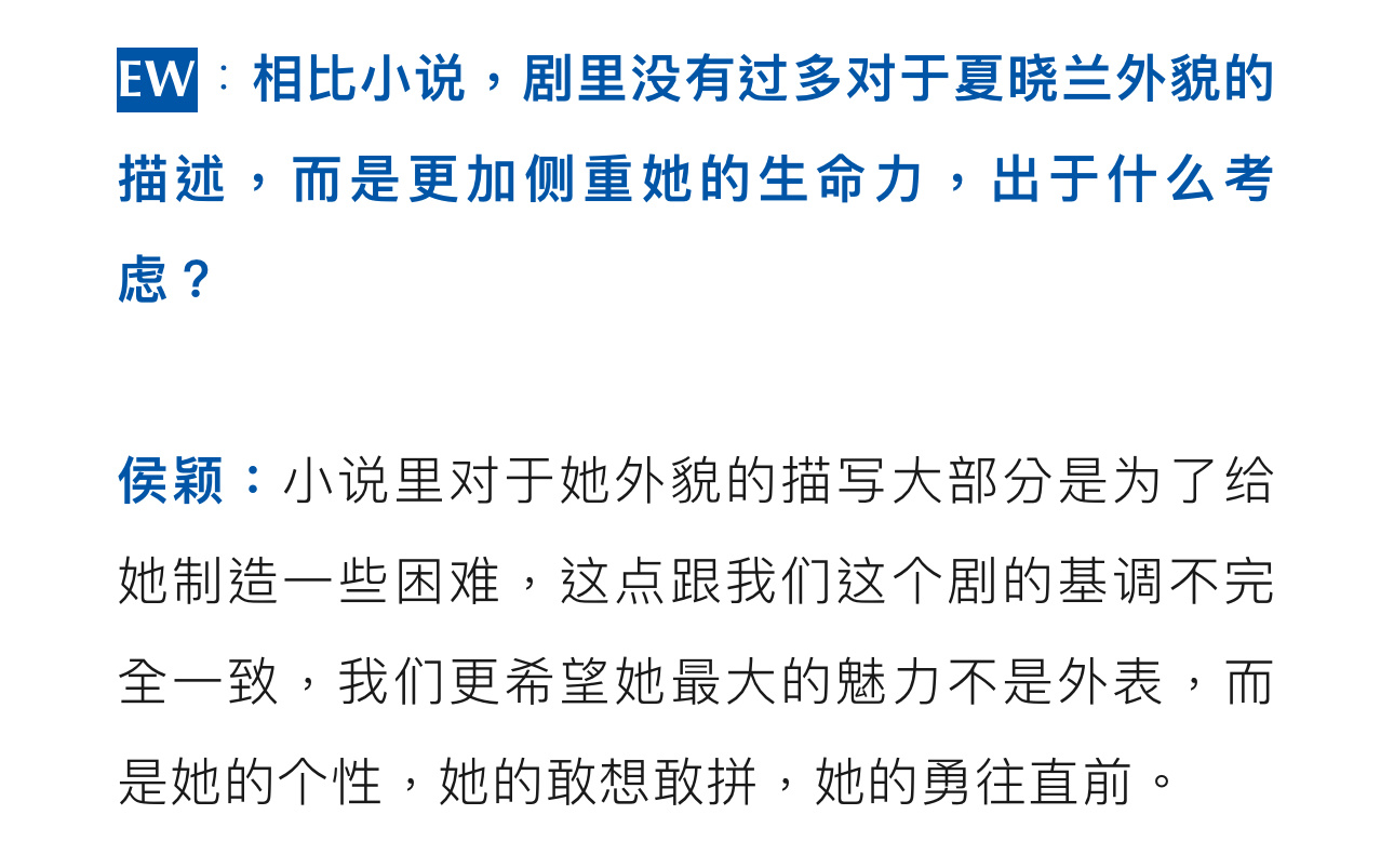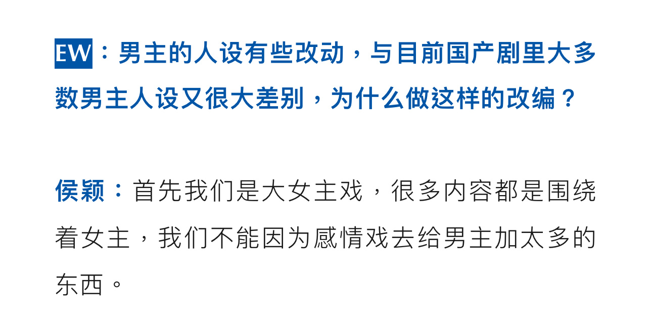 “我们是大女主戏,不能因为感情戏去给男主加太多的东西。”