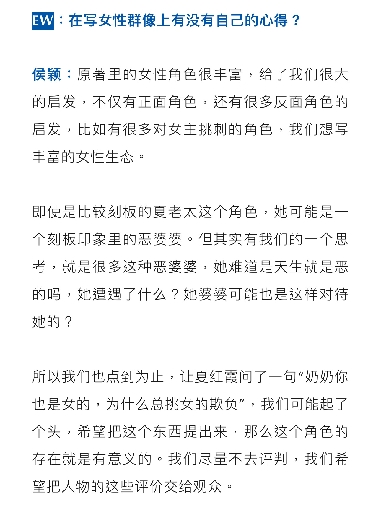 1983编剧侯颖回应女本位内娱编剧不会写女本位的可以来看看侯颖