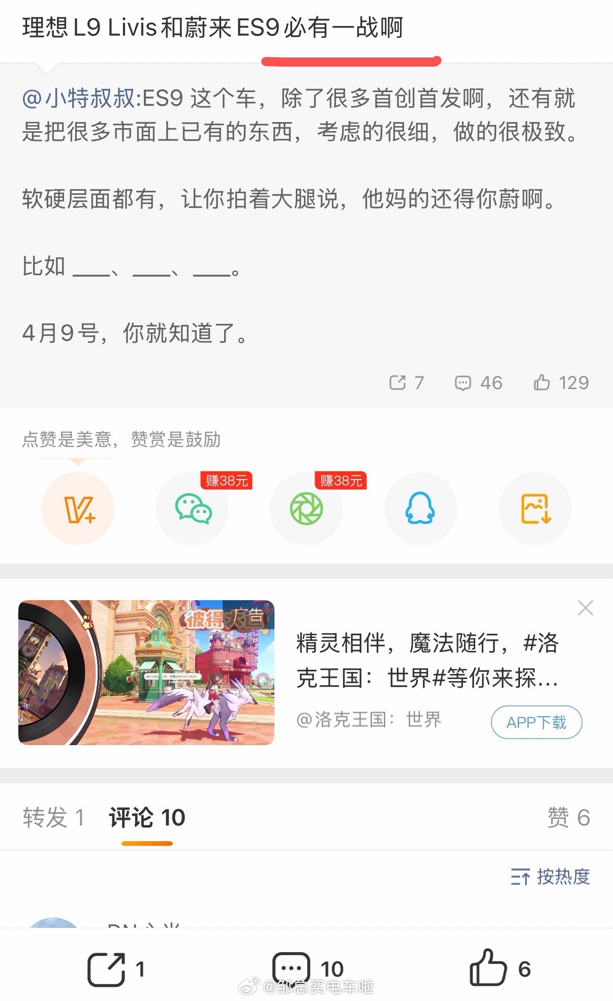 我还想圈一个细节出来:我昨天看到的这两条内容“理想L9 Livis和蔚来ES9必有一战啊”甚至连句末的语气助词“啊”都完全一致,这是巧合吗?