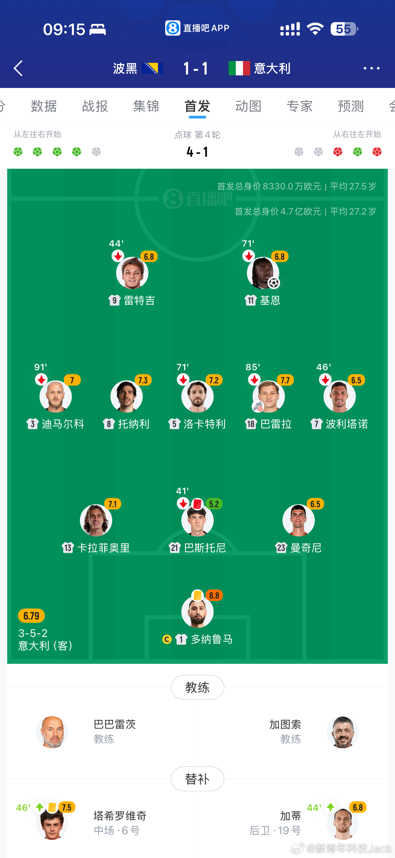 意大利连续3届无缘世界杯我是不知道意大利到底怎么会这样,阵容这么强尤其是中场和门将,而且身价4.7亿,是对面波黑8300万的好几倍。唯一能说的就是意大利的意志品质,教练和战术有问题