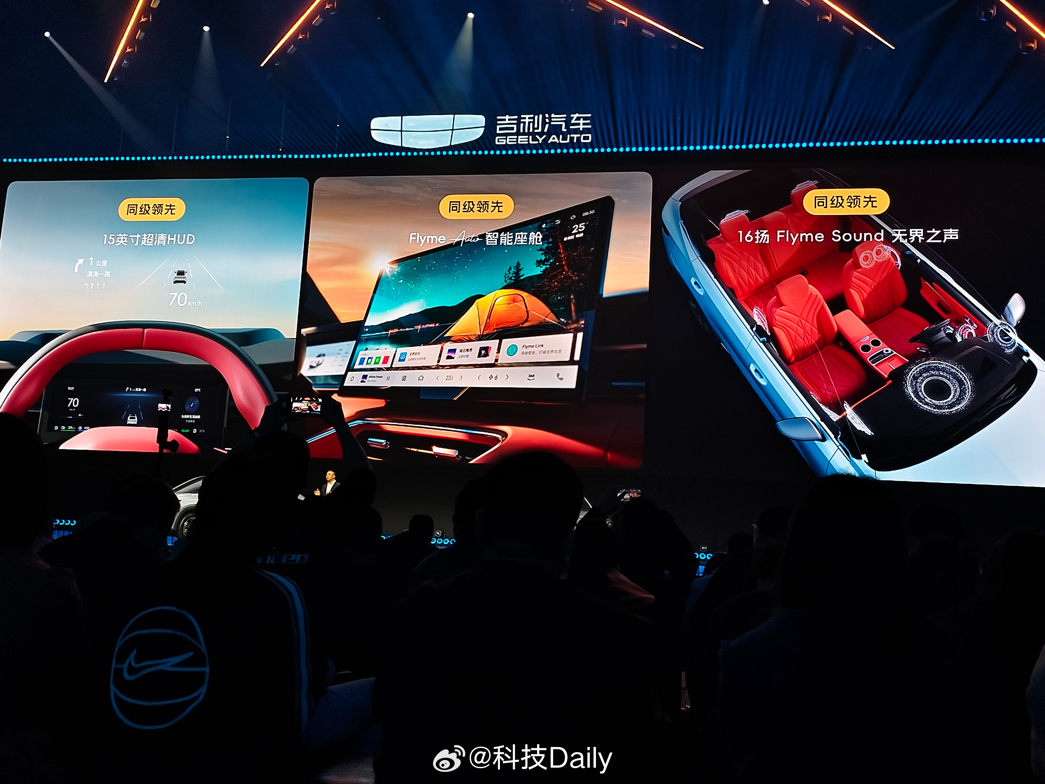 座舱设计则是使用了环抱式轻奢布局,配备8.8英寸仪表、14.6英寸中控屏、15英寸超清HUD 及128色氛围灯,更是支持Flyme Auto智能交互系统、星睿AI大模型与16扬声器Flyme Sound音响系统。