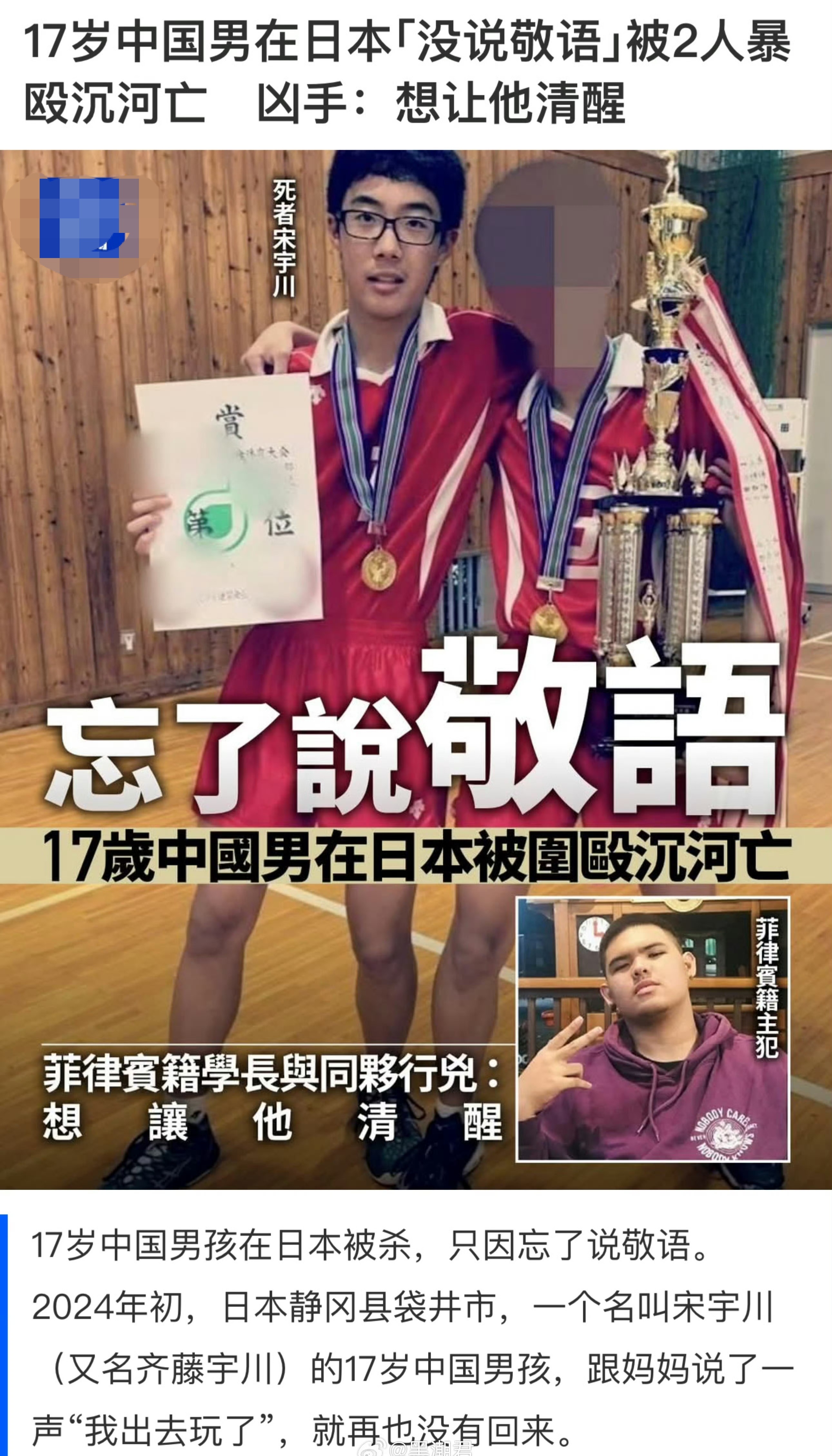这种案件发生的时候,公知们就哑巴了。还有学长的同伙应该是日本籍。