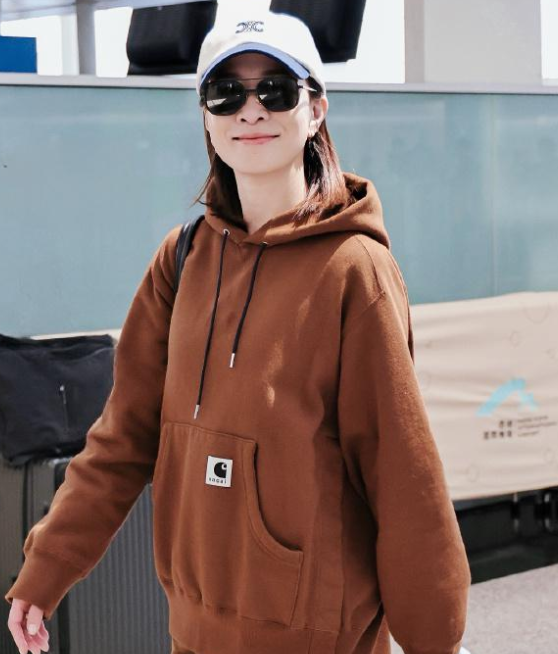 佘诗曼机场私服真会穿! 棕色连帽卫衣+短裙+毛绒靴子,休闲时髦又洋气