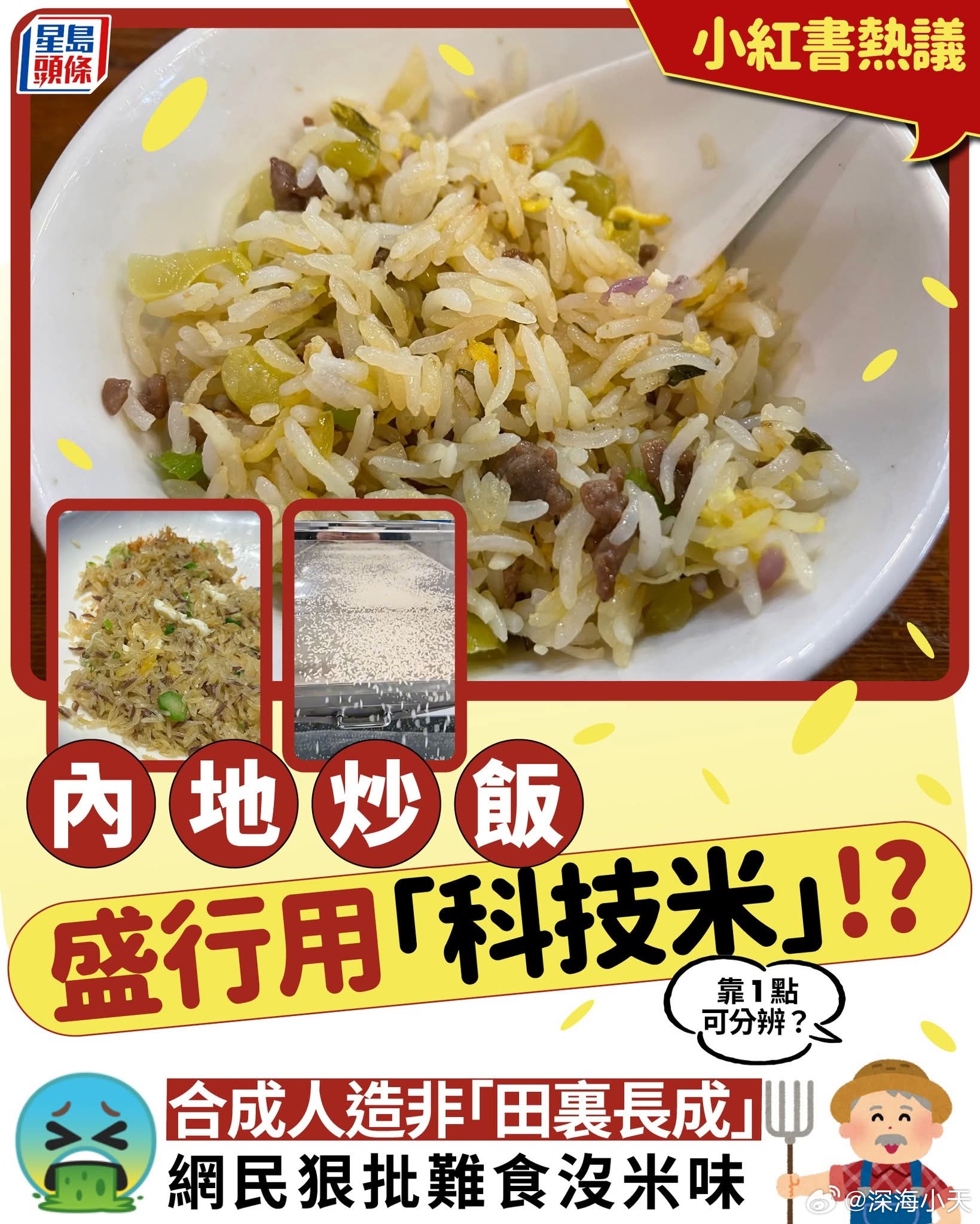 港媒:内地炒饭盛行用科技米,合成人造非田里长成星岛报道,有网民以「能不能杜绝这种